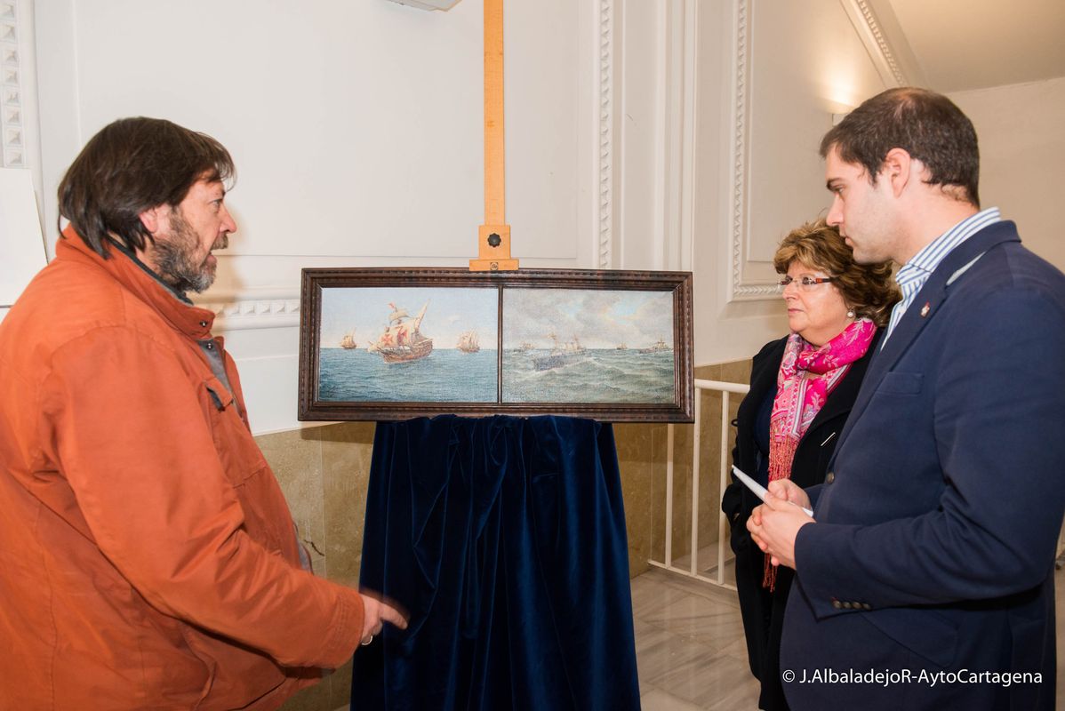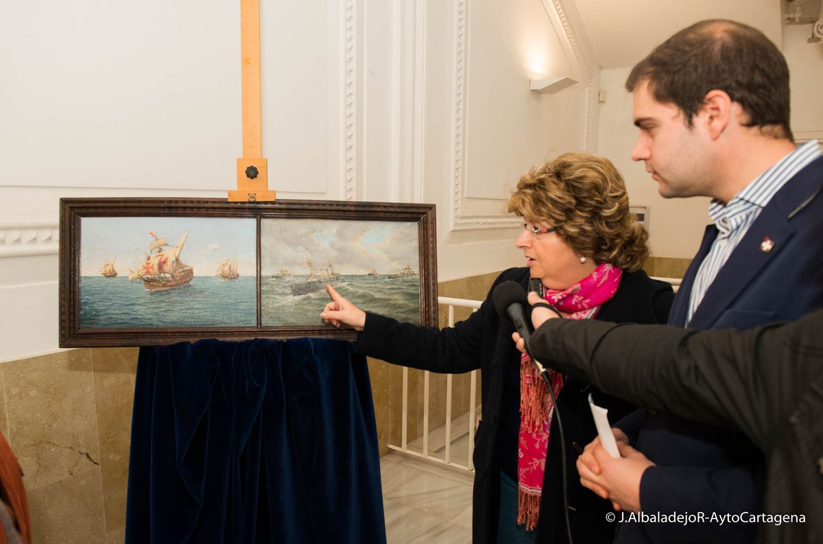 directora general de Patrimonio Histórico y Arqueología, María del Carmen Berrocal. Ambos han explicado en qué ha consistido la restauración y el significado de la obra, así como también han glosado la relación de su autor con la ciudad de Cartagena.
