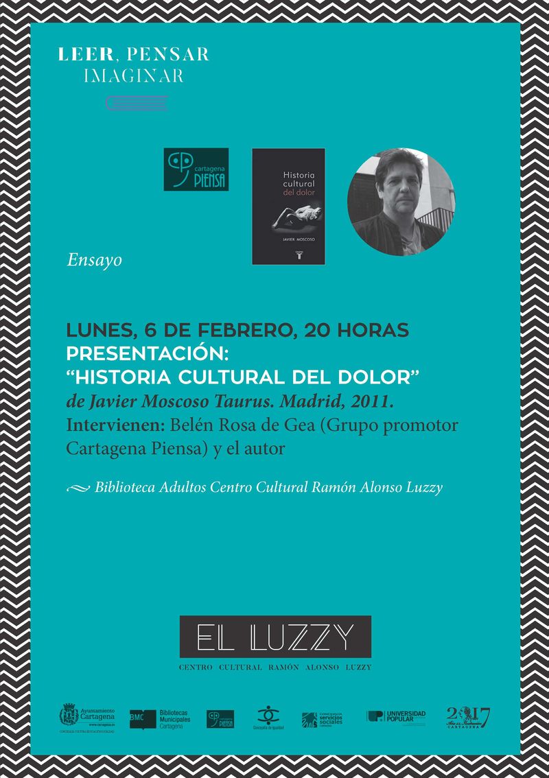 lunes 6 de febrero a las 20 horas se presenta el ensayo 'Historia cultural del dolor', de Javier Moscoso. En el acto, que se celebrará