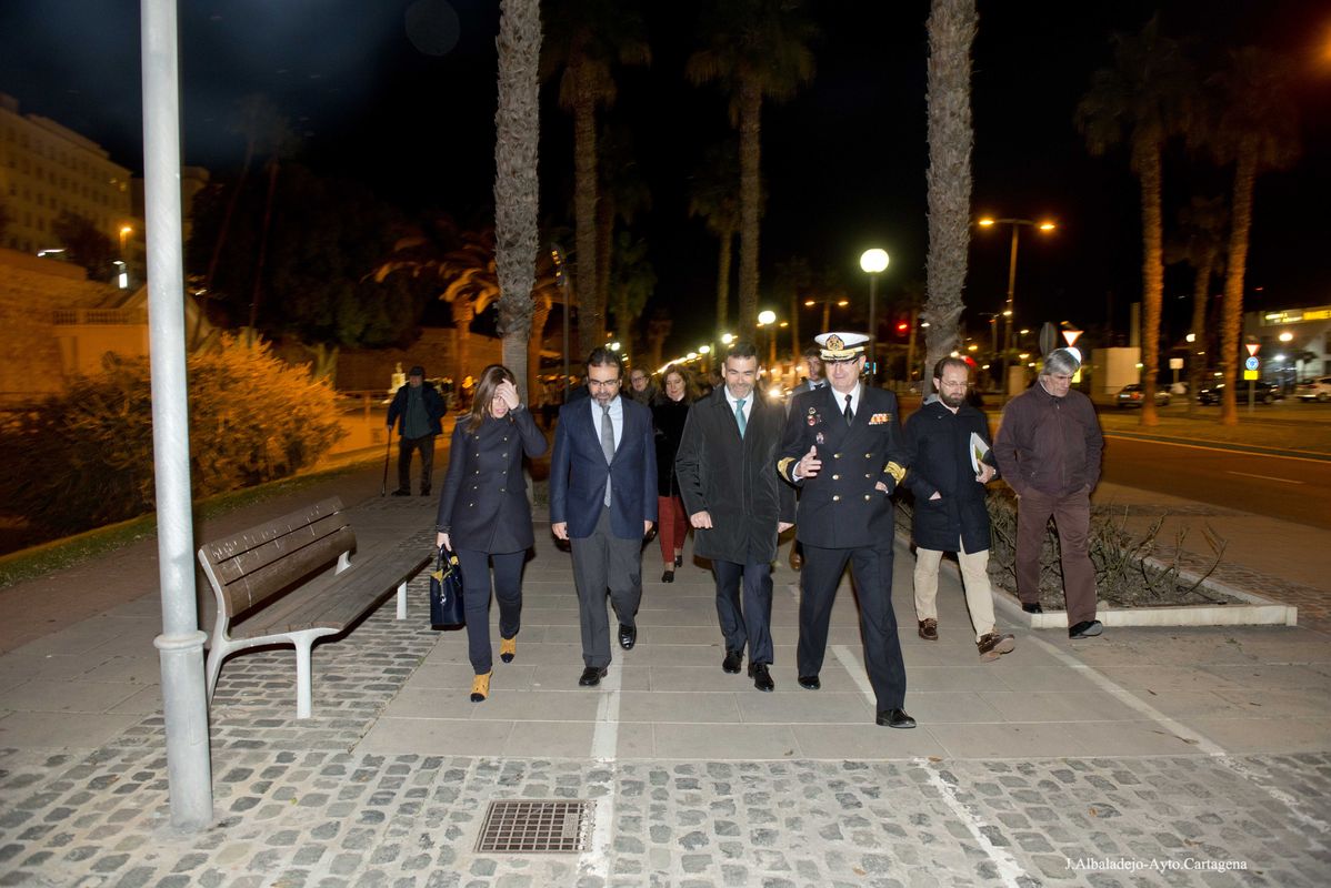 Tras el acto, la comitiva se dirigió al Palacio Consistorial para inaugurar la exposición 'Cartagena de España Ilustrada; La construcción naval en la Capitanía del Departamento Marítimo del Mediterráneo', una muestra que