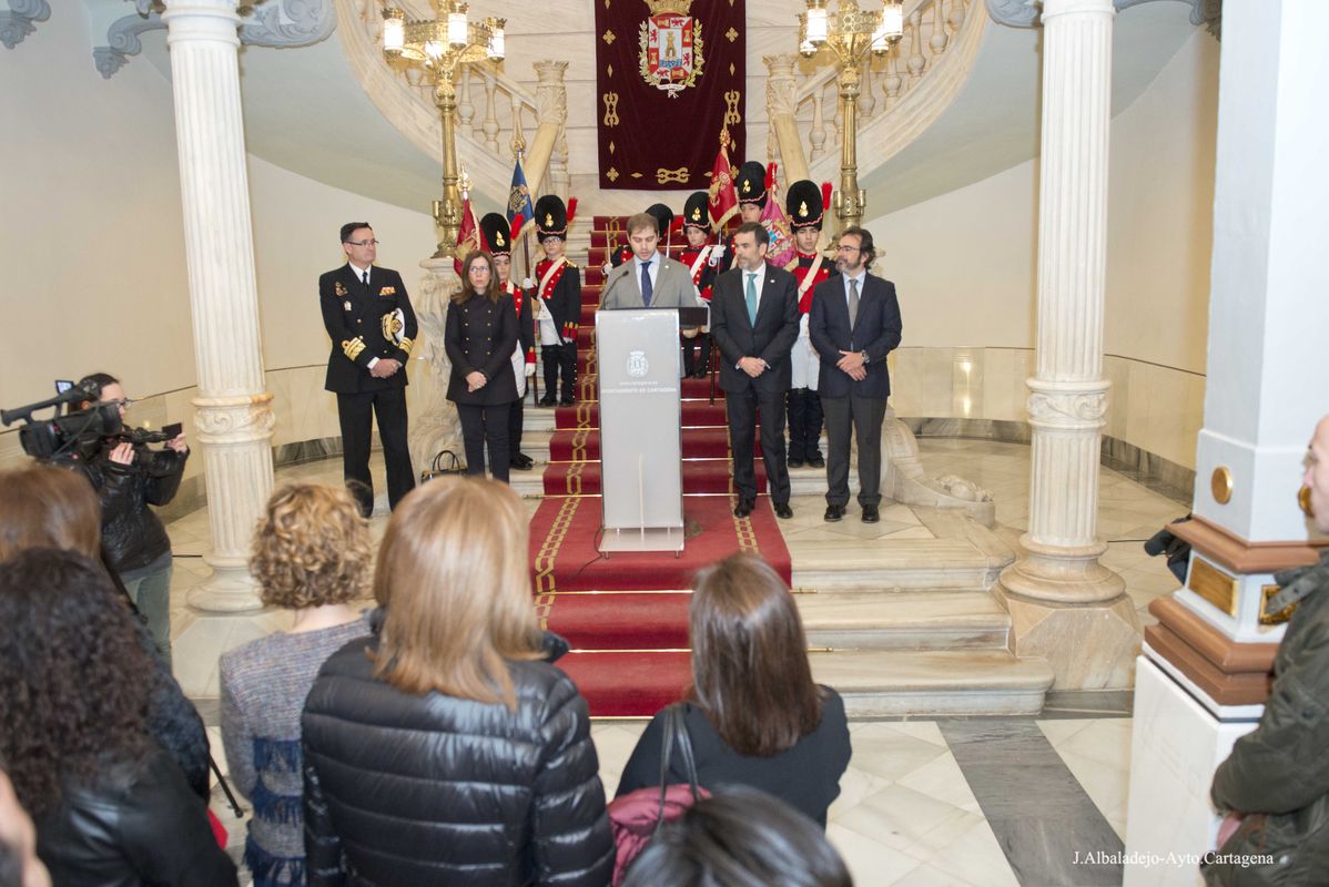 cronista oficial de la ciudad, Luis Miguel Pérez Adán, instruyeron a los allí presentes acerca de la etapa de la Ilustración en Cartagena y sobre las piezas expuestas.