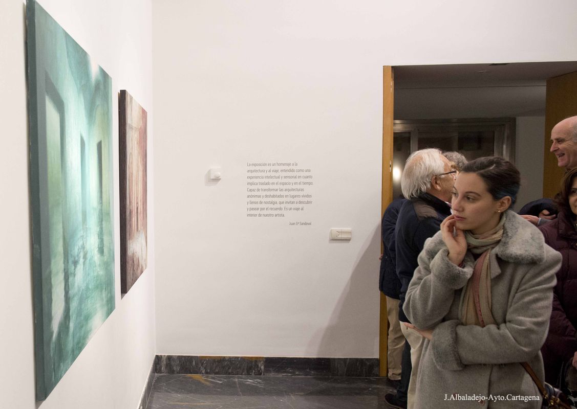 se podrá visitar en la 'Sala de Exposiciones Temporales' del Museo del Teatro Romano de Cartagena hasta el 29 de mayo, resume la vinculación del artista con esta disciplina espacial y su forma de acercarse a ella, a través de la textura y el color. El autor proyecta en su obra sobre lienzo, tabla y papel, su mirada creadora en espacios existentes o de su invención, para devolvernos estas obras pintadas cargadas de atmósferas y luces filtradas, de perspectivas y gamas cromáticas que nos transportan a espacios plenos de serenidad.