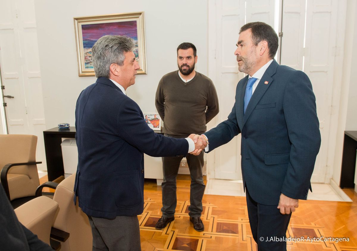 El alcalde de Cartagena, José López, ha mantenido una reunión este martes, 14 de febrero, con el Cónsul General de Ecuador en la Región de Murcia, Gustavo Mateus Acosta, en la que han hablado de las próximas elecciones de Ecuador, que tendrán lugar el próximo domingo, 19 de febrero.