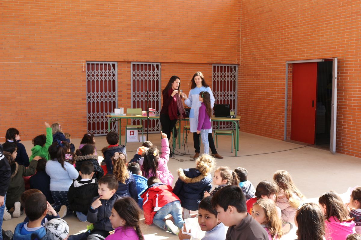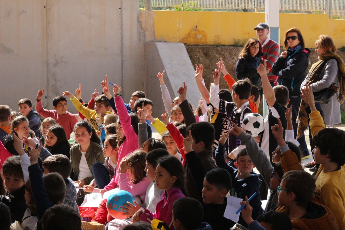 jugadores Rivero, Marcos y Óscar Ramírez se han desplazado tras el entrenamiento hasta el centro educativo para pasar una jornada muy divertida con todos los alumnos del centro.