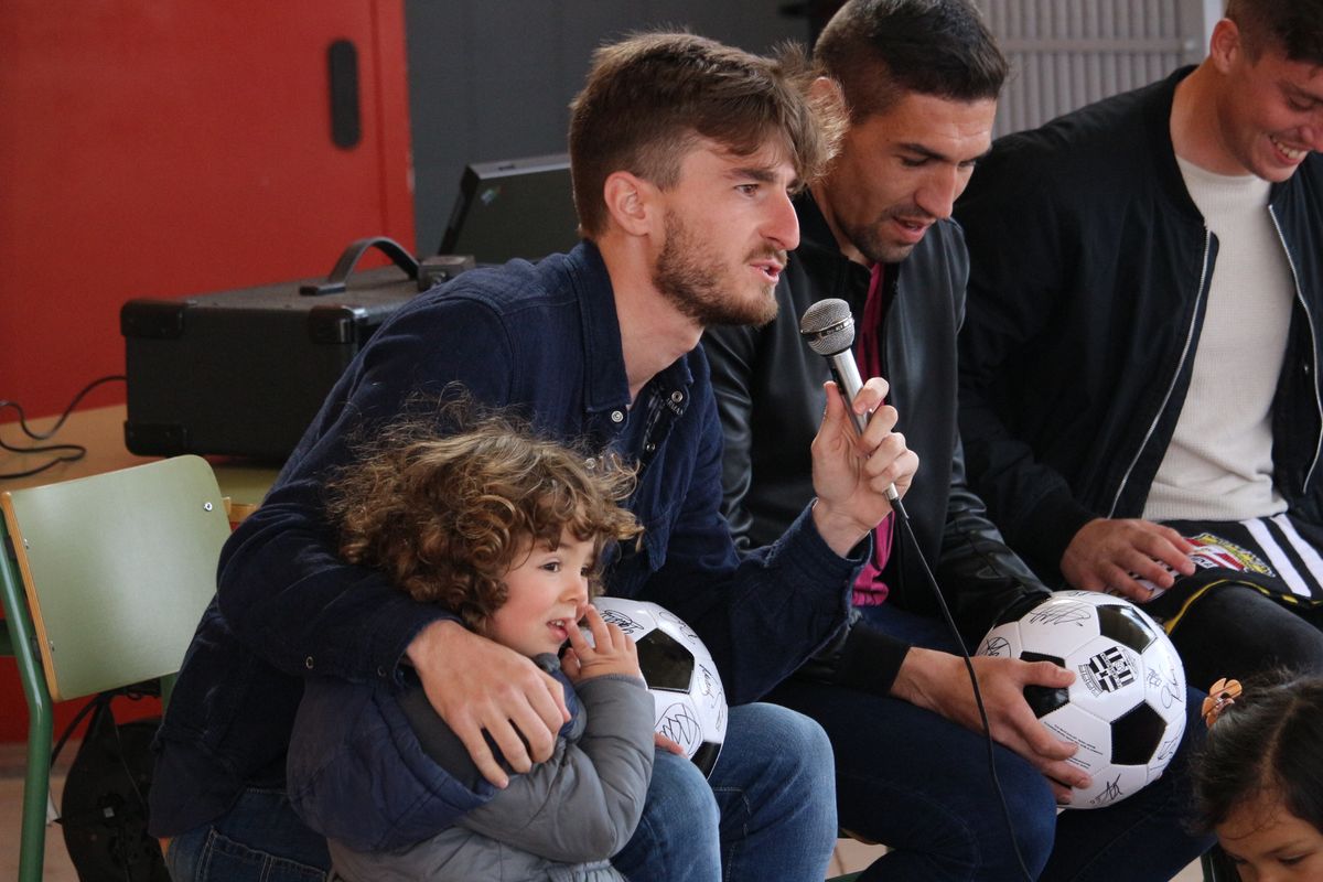 Los niños y niñas del centro educativo pudieron conocer a algunos de sus ídolos y saciaron su curiosidad formulando todo tipo de preguntas que fueron respondidas por los jugadores albinegros