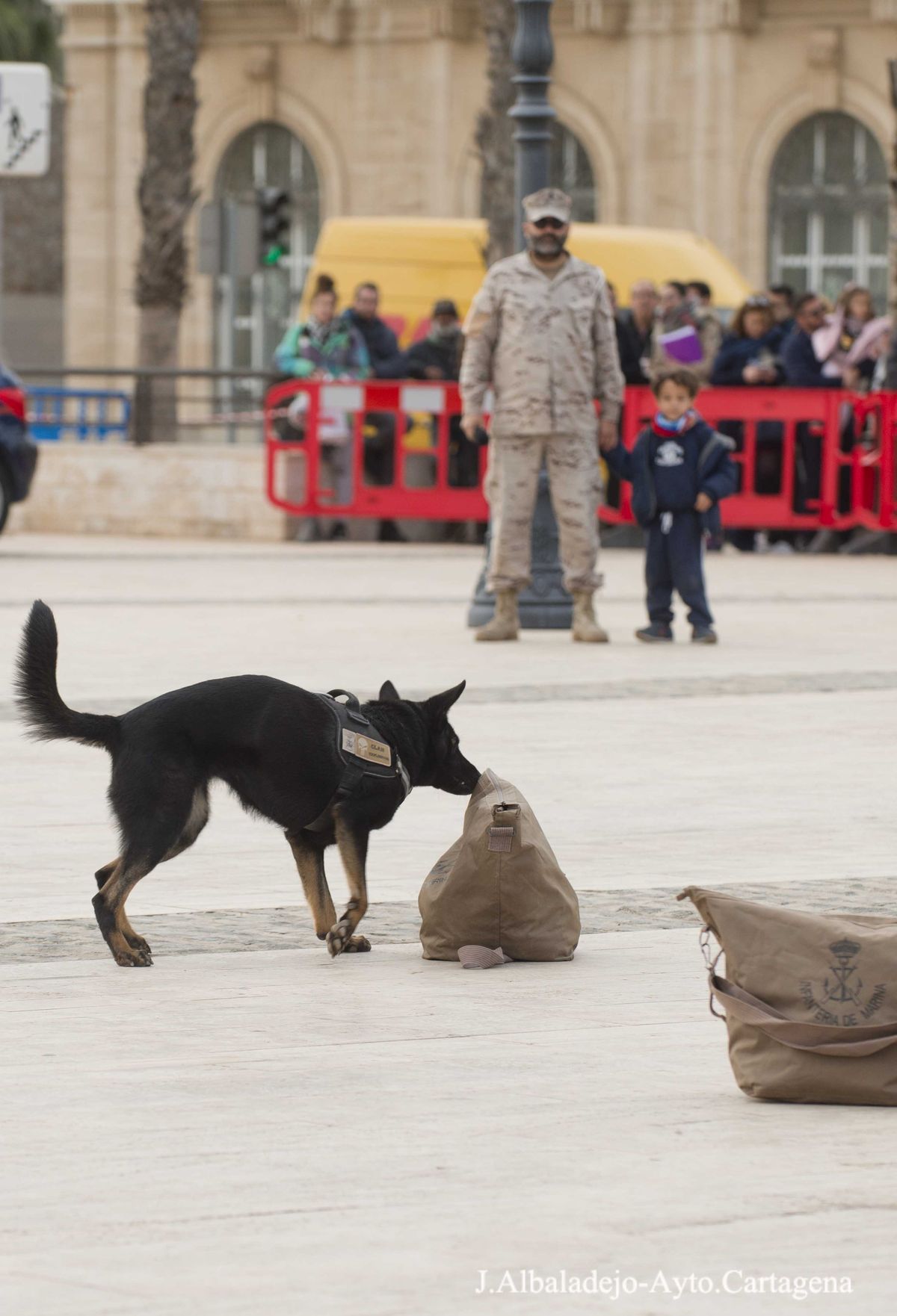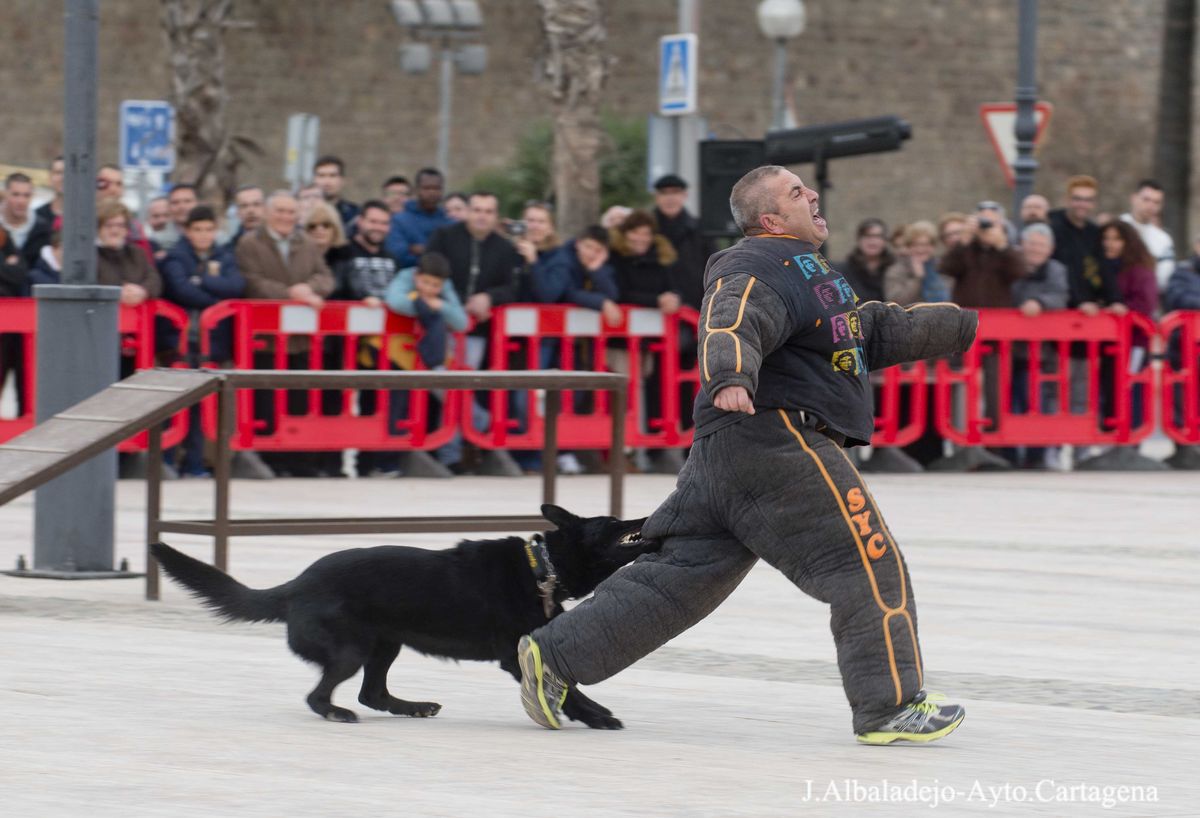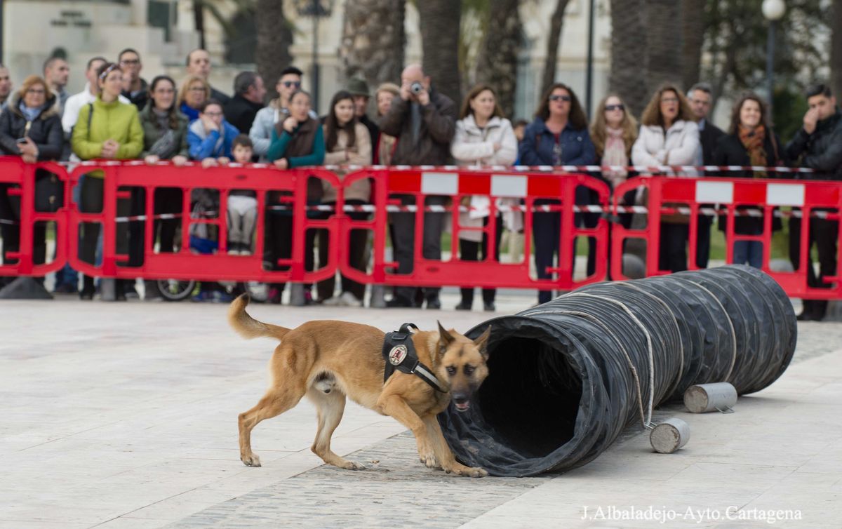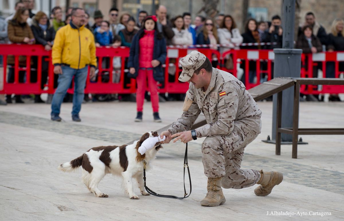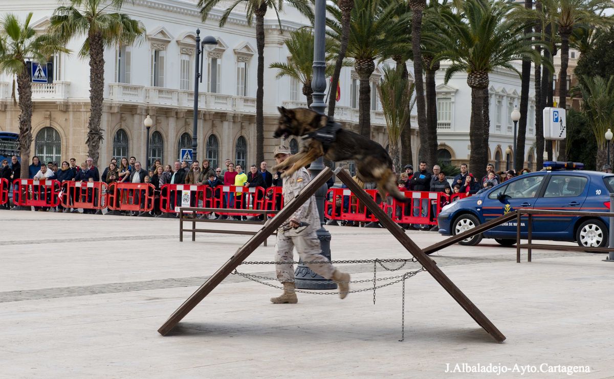 exhibición de la Unidad Cinológica del Tercio de Levante, donde se demostró el alto nivel de adiestramiento de los perros que sirven en esta Unidad. Los canes mostraron al público asistente cómo participan en labores de detección de drogas y estupefacientes, detectores de minas y explosivos, de seguridad y combate.