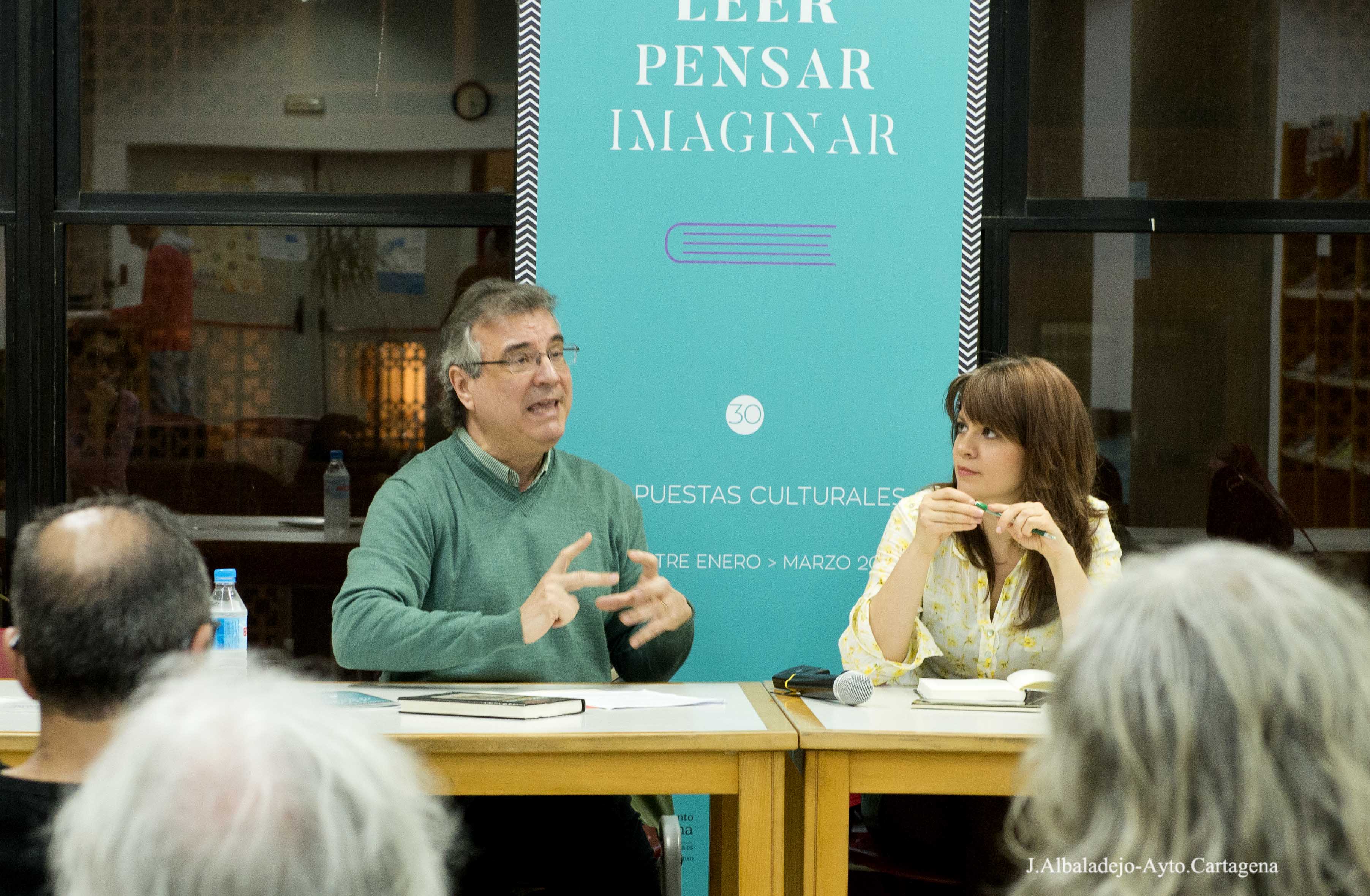Biblioteca de Adultos del Centro Cultural Ramón Alonso Luzzy. Estuvo acompañada por Vicente Cervera Salinas (Catedrático de Literatura Española, Teoría de la Literatura Literatura Comparada de la Universidad de Murcia y poeta).