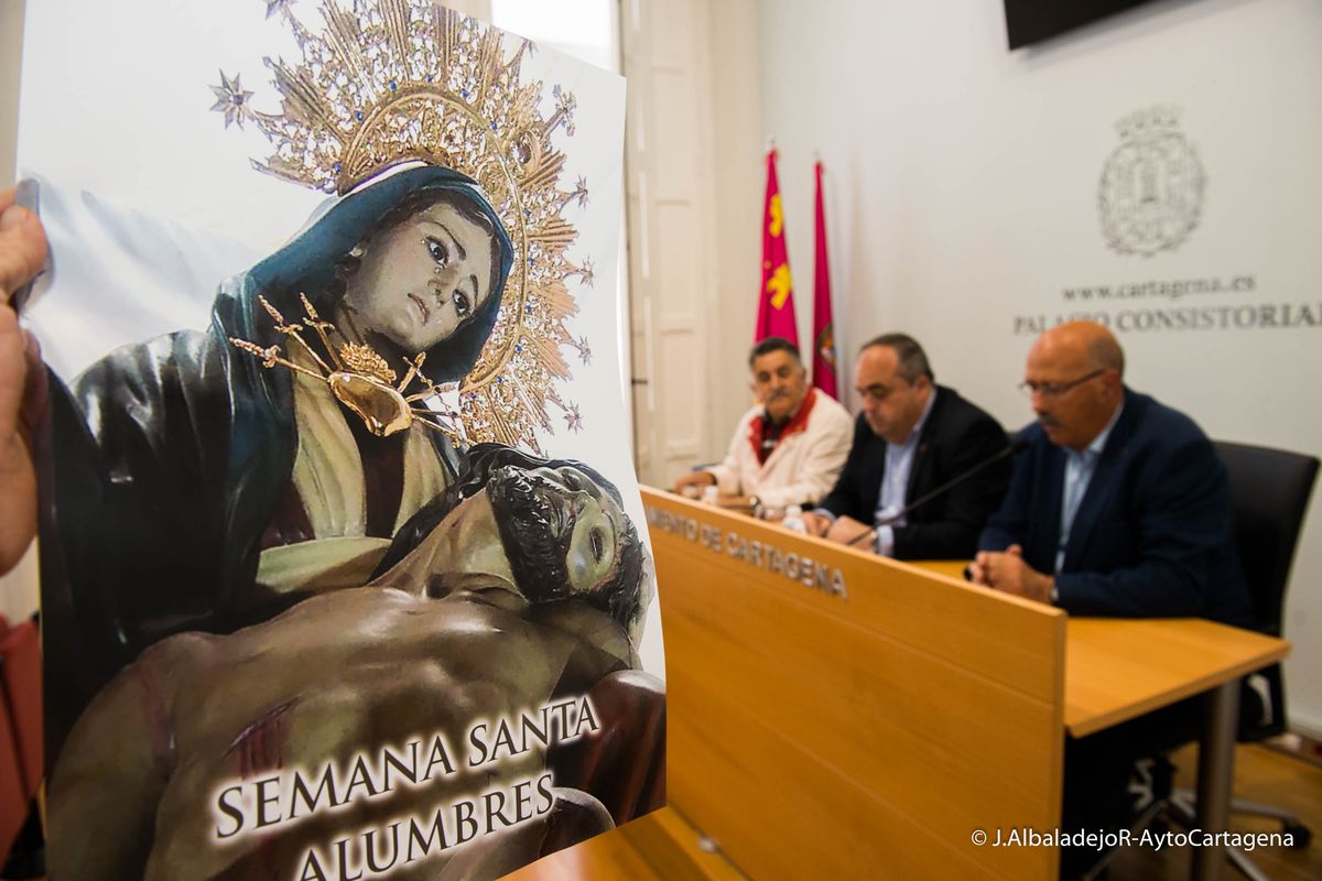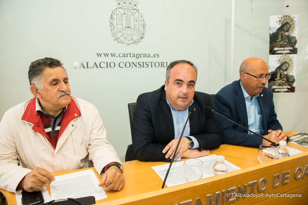 Alumbres arranca la programación de su Semana Santa este viernes, 3 de marzo, con el besapié Nuestro Padre Jesús Cautivo, que concluirá con una misa solemne. Así lo ha anunciado este jueves, 2 de marzo, el concejal del Área de Descentralización, Juan Pedro Torralba, quien ha presentado la programación y el cartel de la Semana Santa de la diputación cartagenera para este 2017. En la presentación han estado también presentes el Hermano Mayor de la Cofradía de la Santísima Virgen de la Caridad de Alumbres, Jesús Bascuñana, y el presidente de la Junta Vecinal, Miguel Garrido.