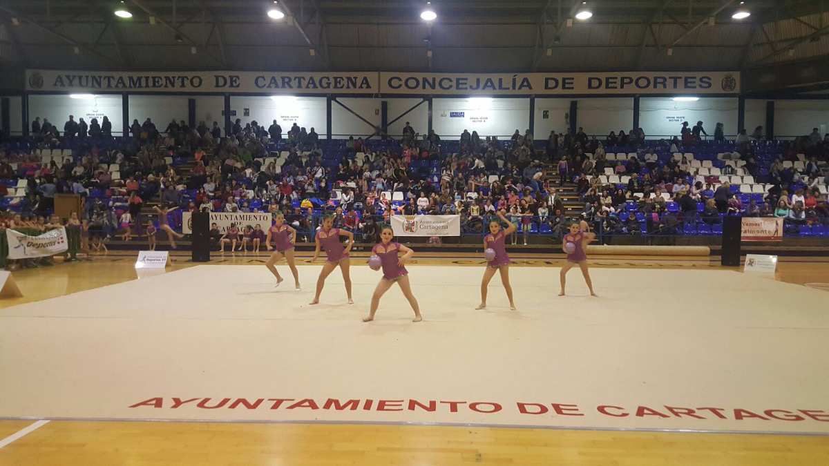 A la competición escolar puso broche de oro la exhibición que realizaron los equipos del Club Rítmica Cartagena y Club Gimnasia San Antón, actualmente campeones de España de Gimnasia Estética de Grupo.