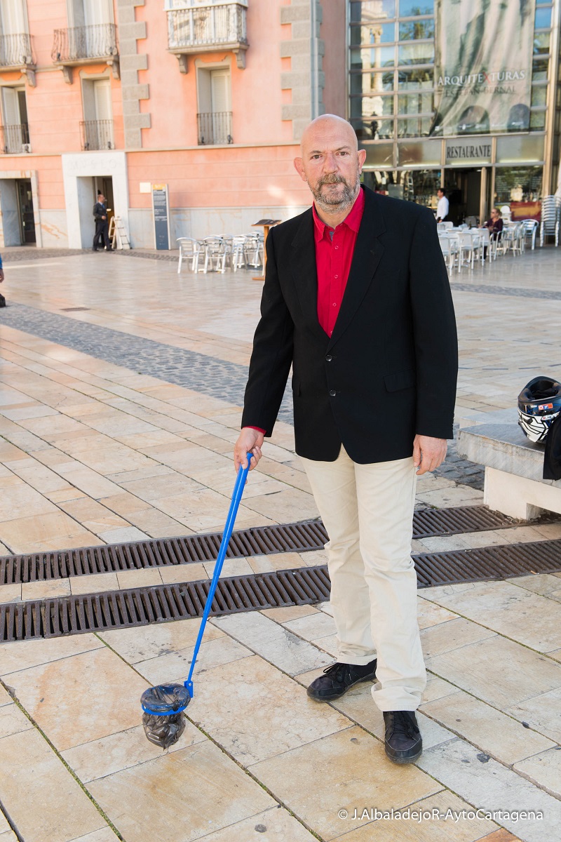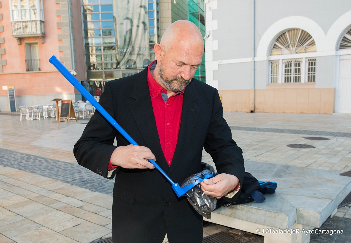 permite recoger las heces de los perros antes de que caigan a la vía pública, evitando tener que agacharse a por ellas. Este ciudadano cartagenero ha inventado este