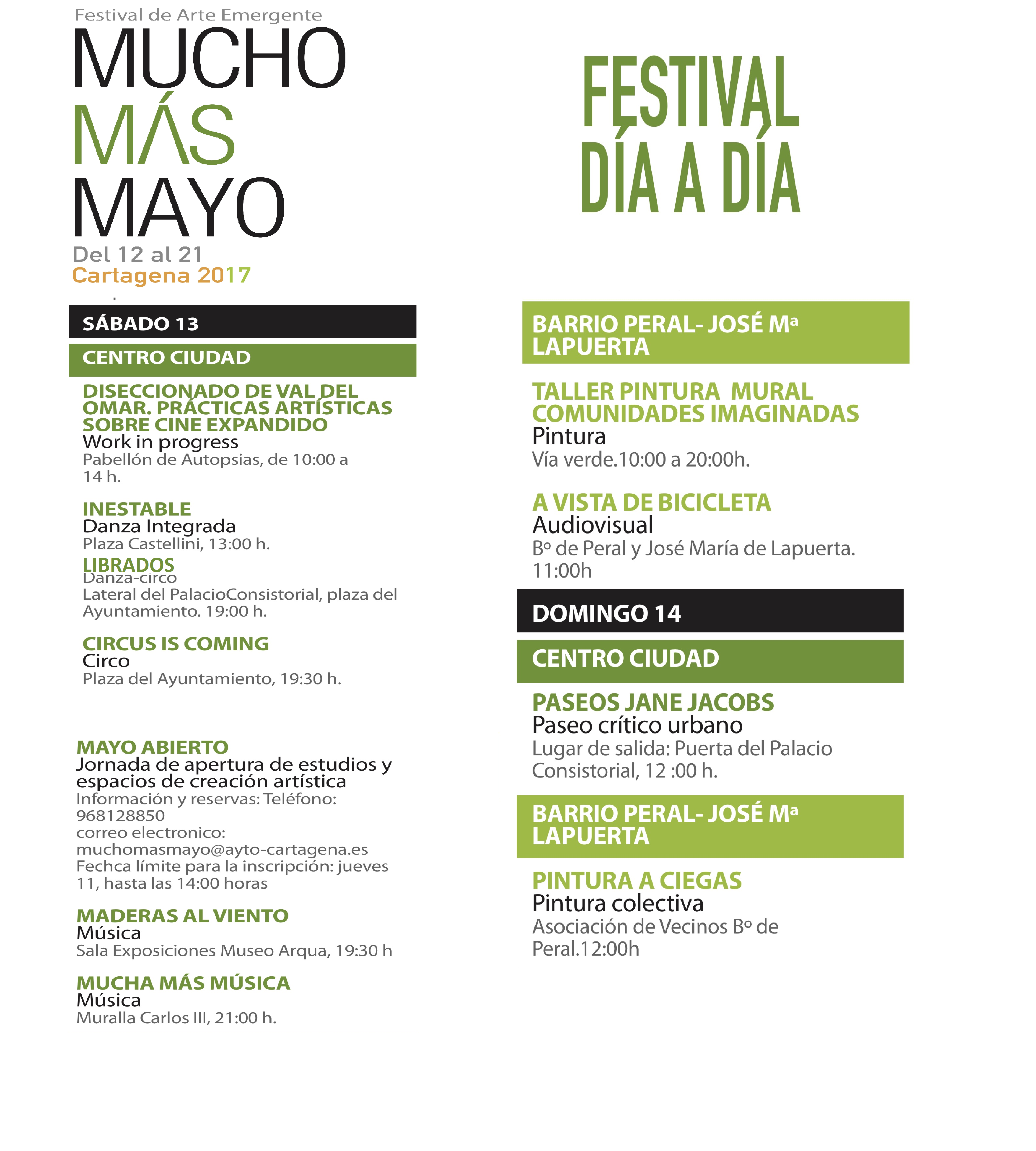 gratuito, componen el programa de Mucho Más Mayo 2017 para este fin de semana. Dará comienzo el sábado 13 de mayo con la nueva sección que estrena este año el Festival bajo el nombre de ‘