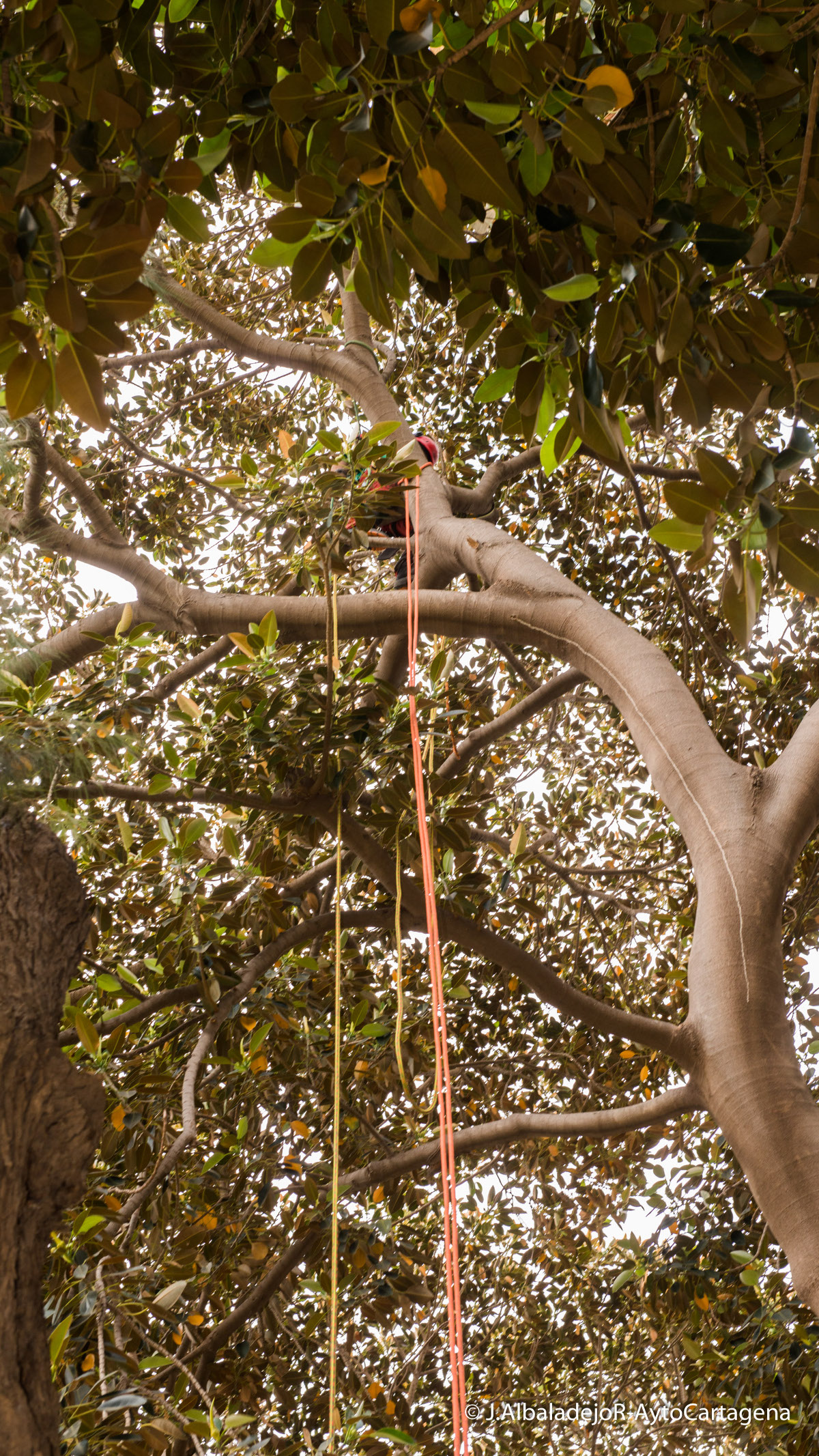 aligerar el peso de uno de los ficus existentes en la plaza de España, con el fin de