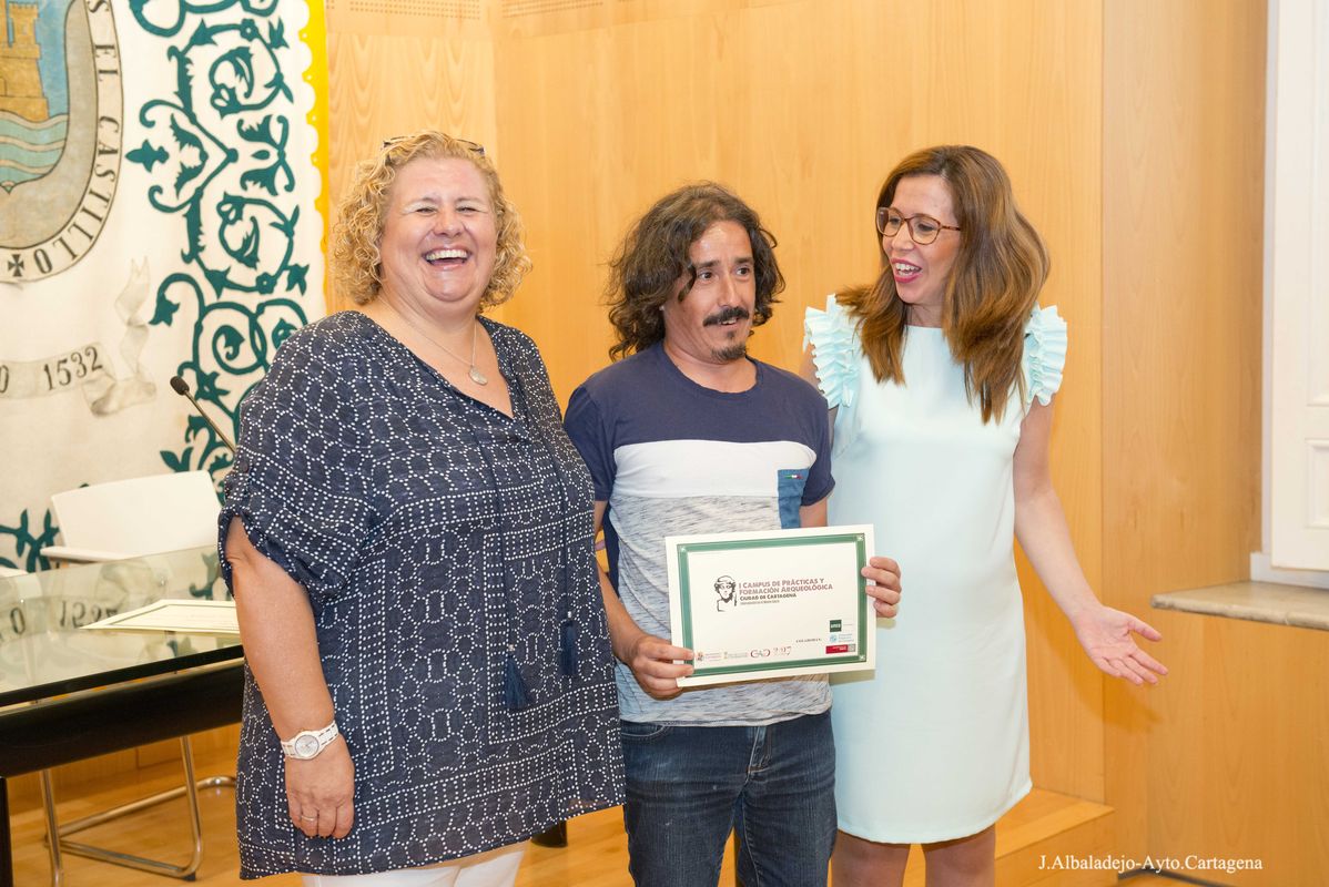 Un total de 16 jóvenes que han trabajado sobre los restos de un posible barrio de clase media-alta del S. I a.C. recibieron este sábado sus diplomas acreditativos de manos de la alcaldesa de la ciudad