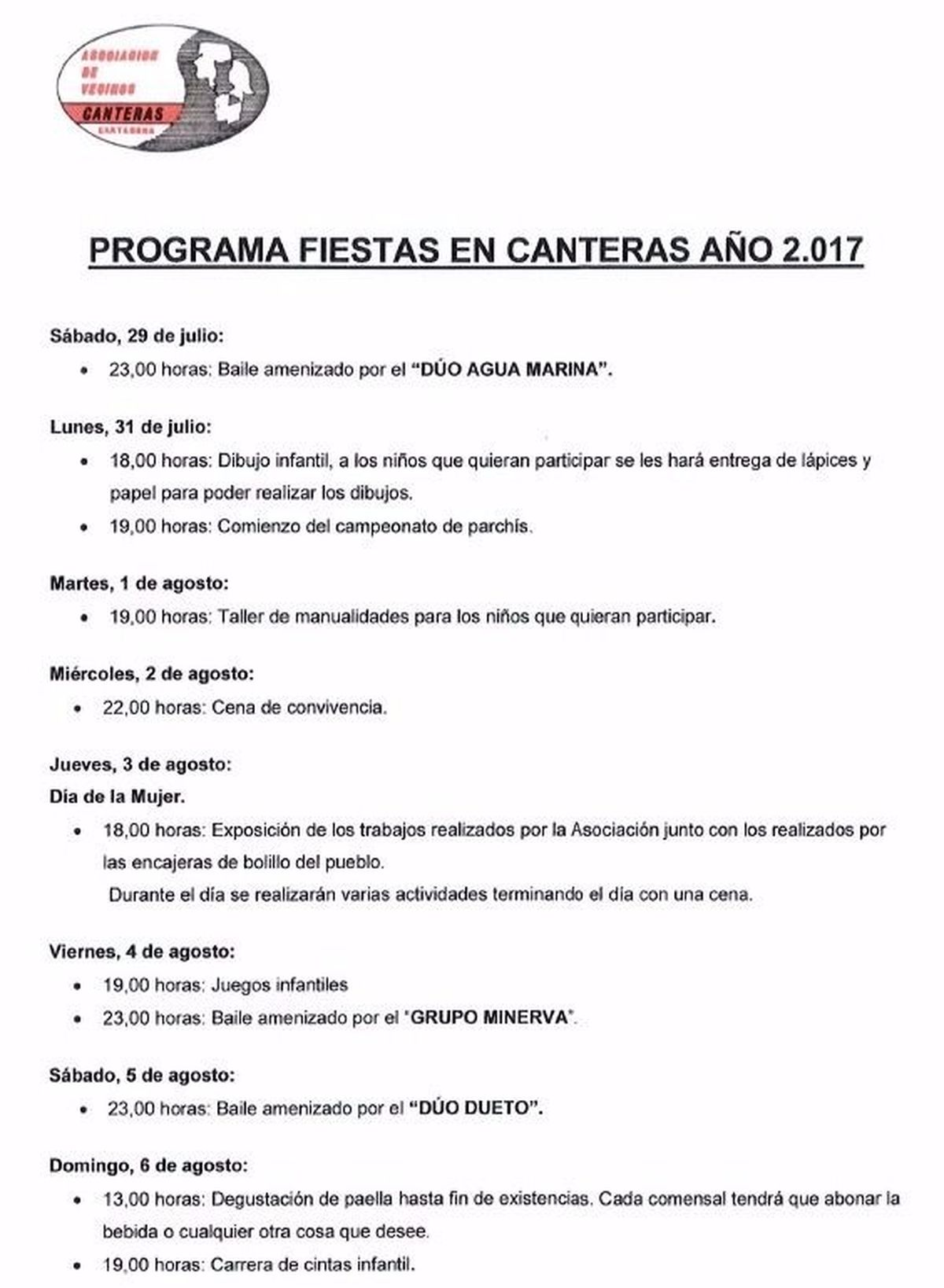 procesión en honor a la patrona de Canteras, la Virgen de la Soledad. El fin de fiestas llegará por la noche, con la actuación del grupo Dúo Nerea, a las 23.00 horas.