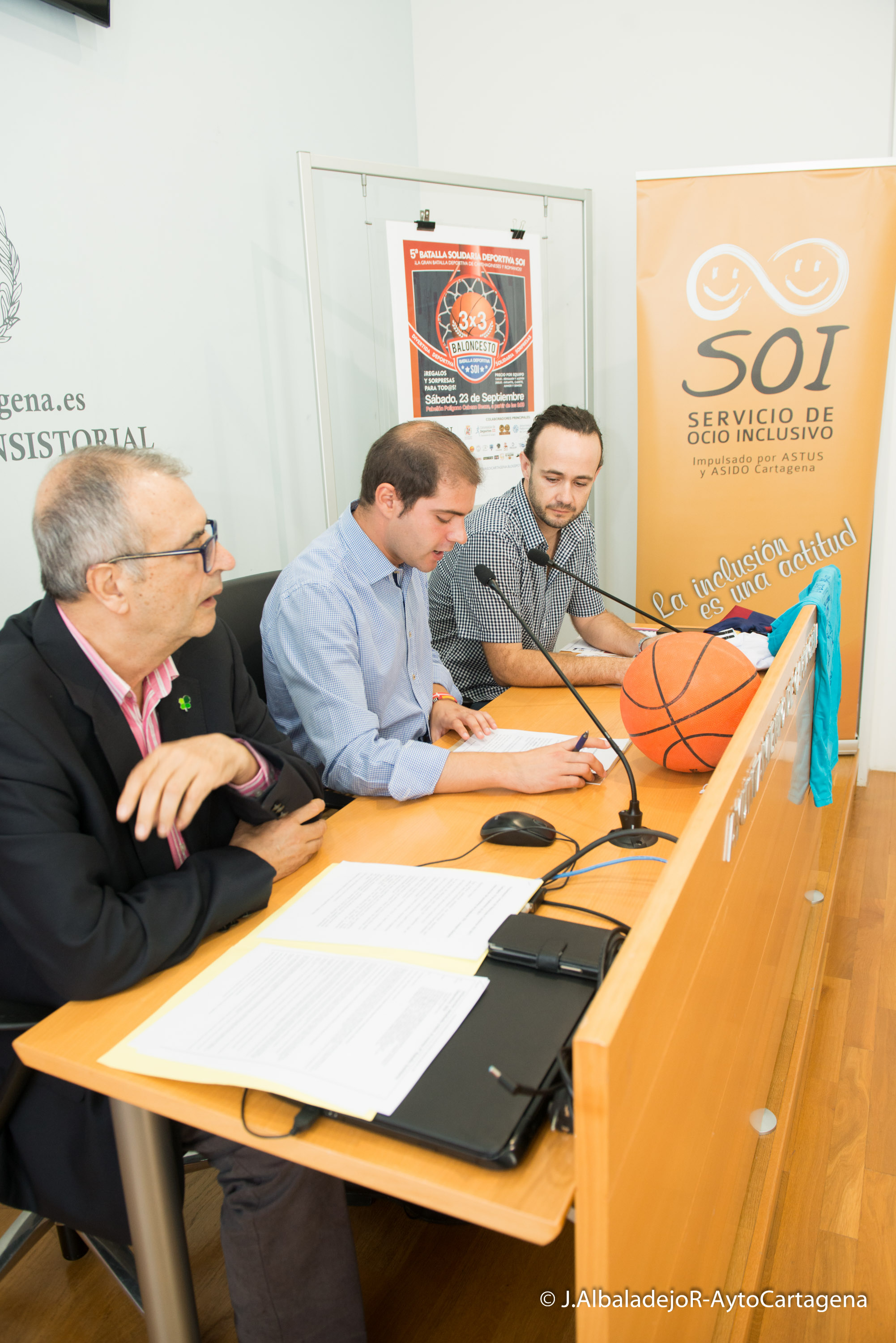 El concejal de Deportes, Ricardo Segado, el presidente de SOI, Joaquín Barberá, y su director, David Rivera, han presentado esta mañana los detalles de esta cita que busca fomentar la actividad física y colaborar con la ONG, dedicada a que los cartageneros con discapacidad intelectual también disfruten de su ocio y tiempo libre.