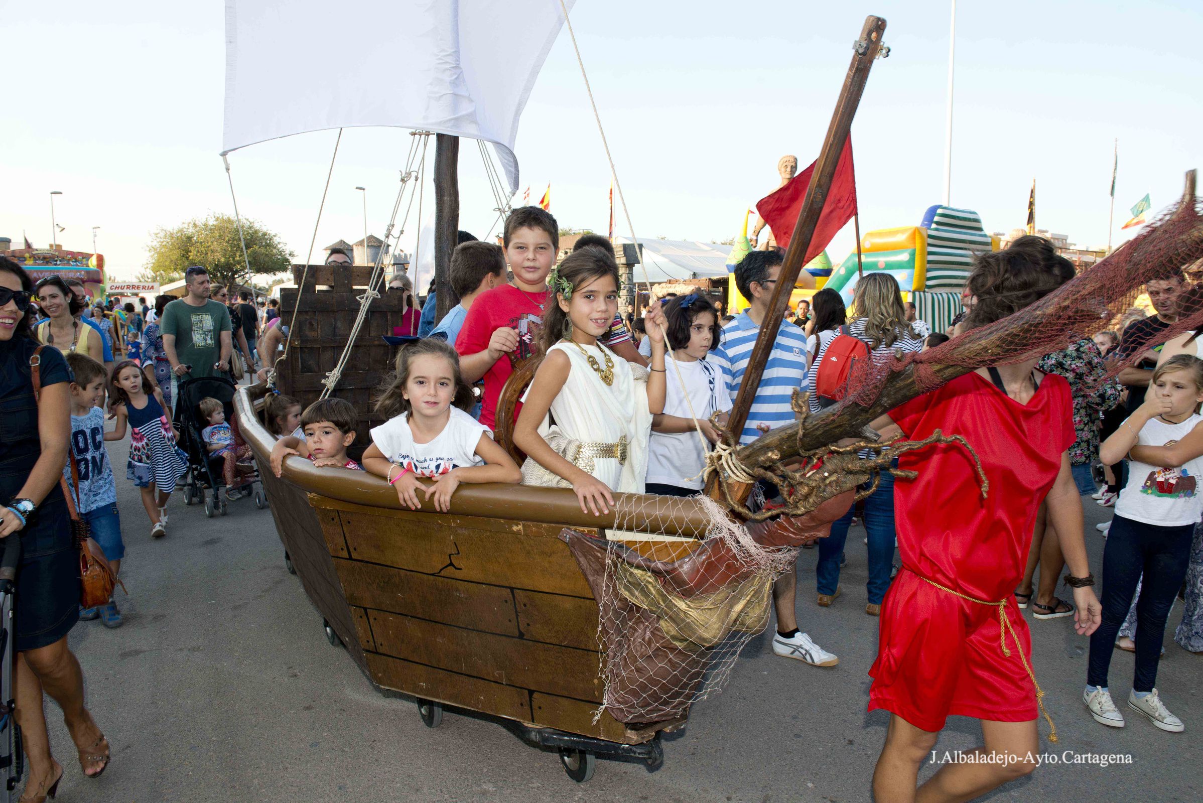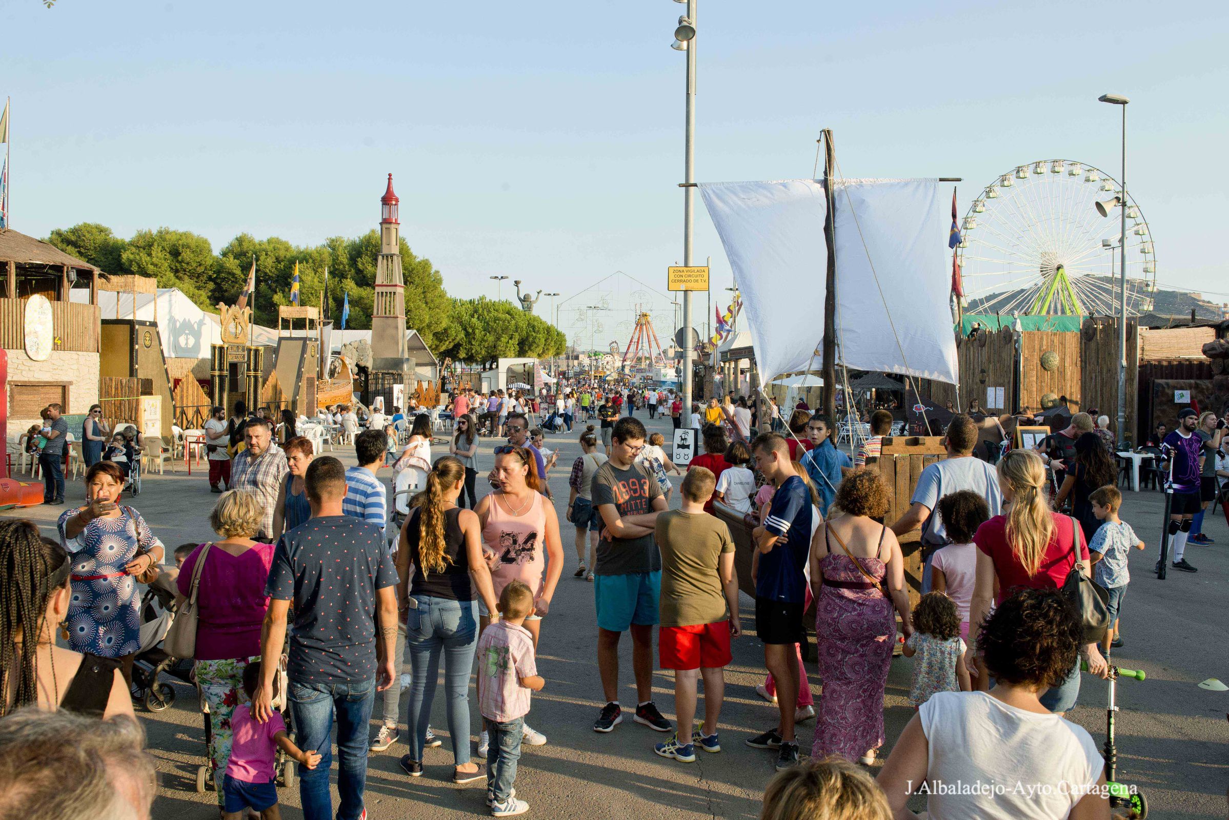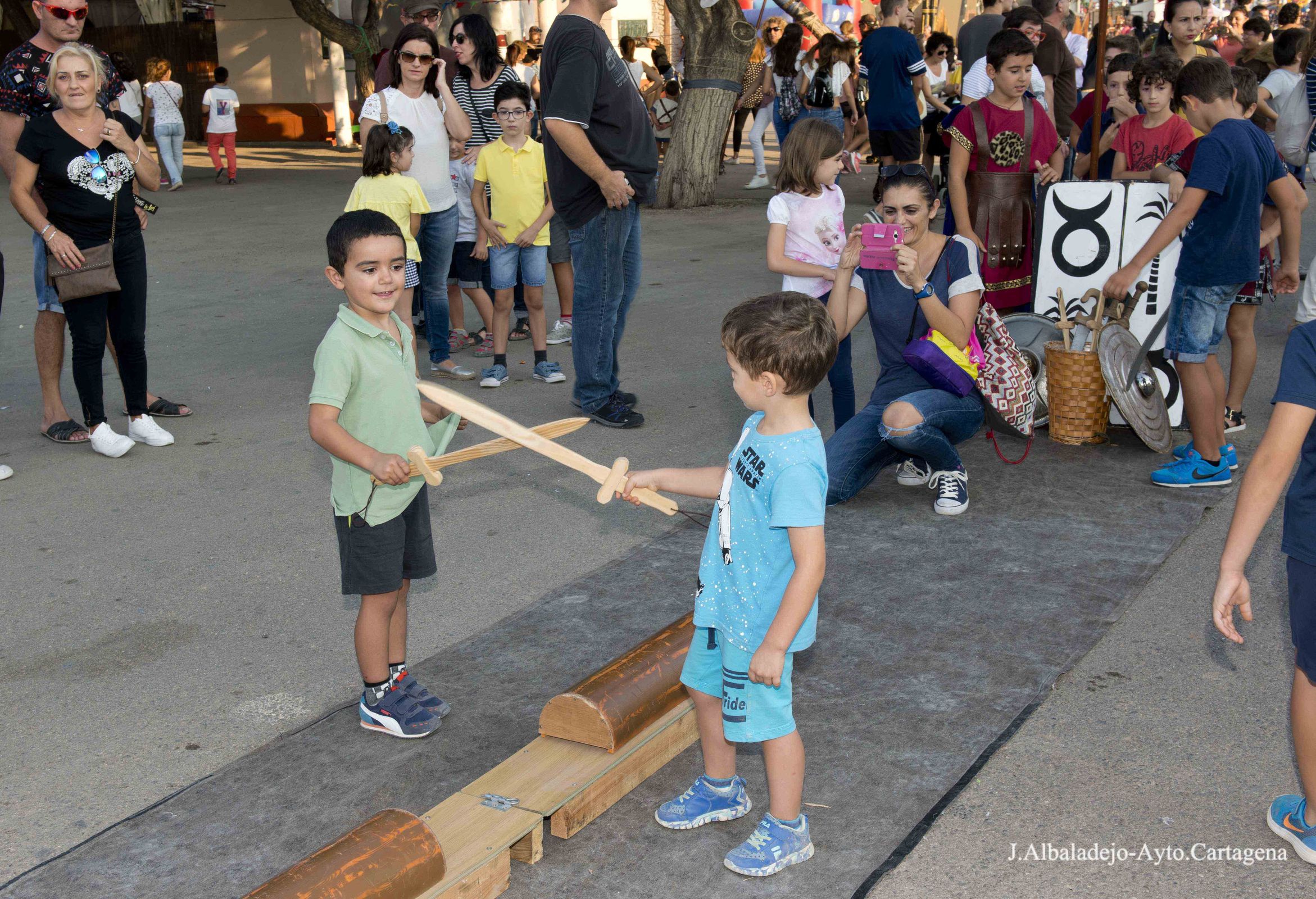 campo de competiciones, juegos y atracciones para las niñas y niños de Cartagena. Los festeros de las Tropas y Legiones organizaron para los niños una serie de competiciones para comprobar la destreza de los más pequeños,
