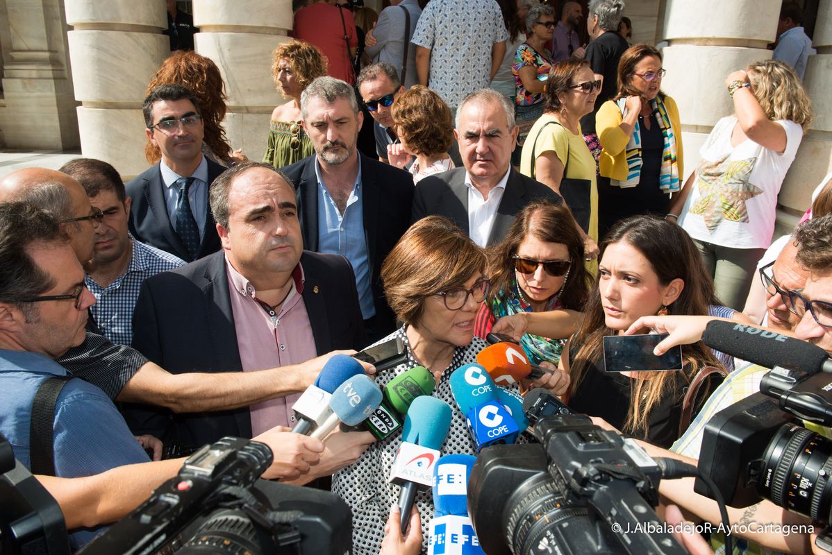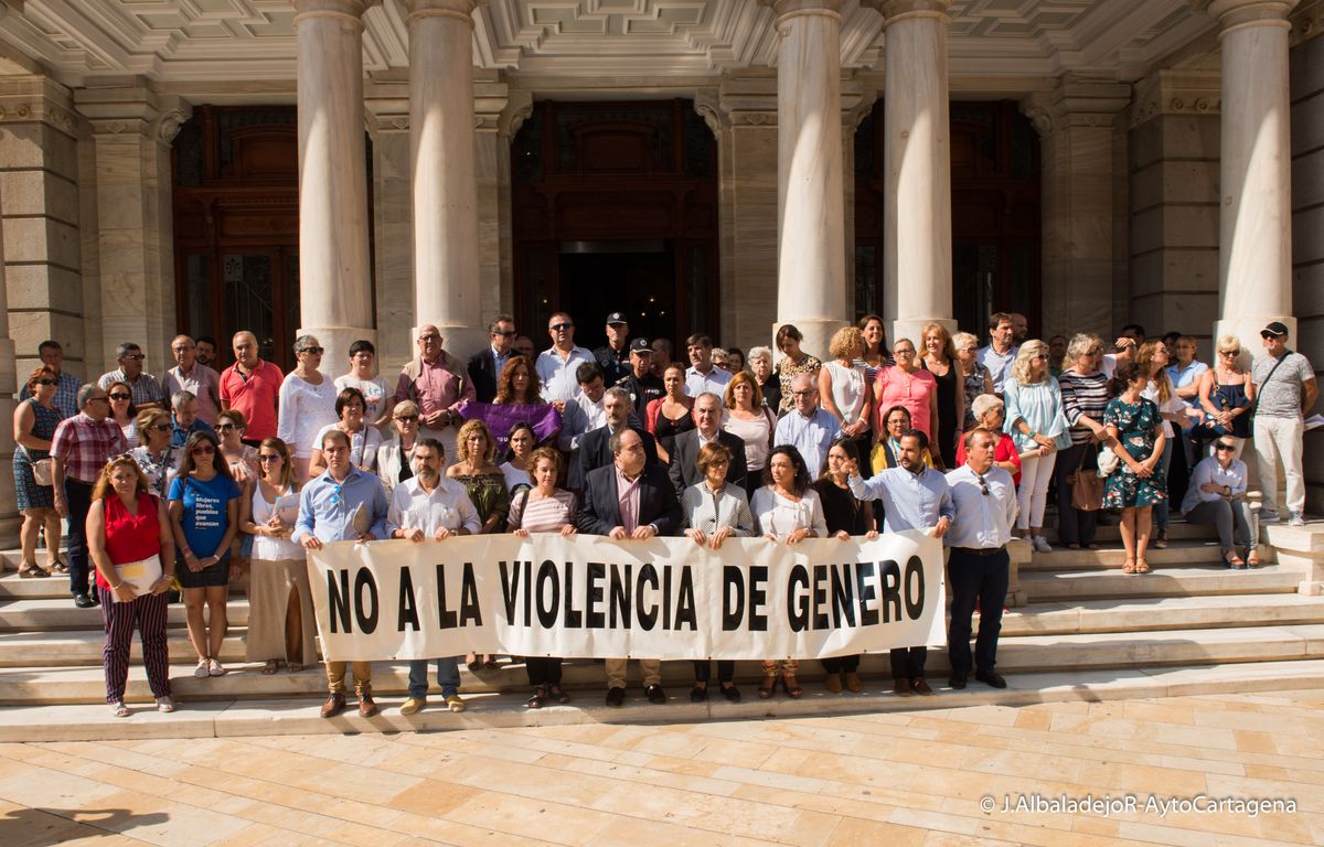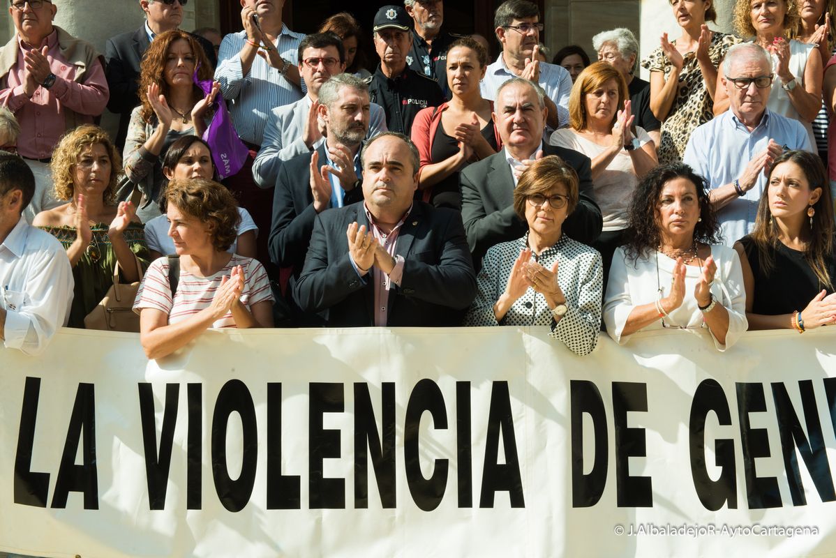 El minuto de silencio que se ha guardado por la tercera víctima de la violencia machista en la Comunidad Autónoma han estado presidido por la presidenta de la Asamblea Regional y el alcalde en funciones de Cartagena