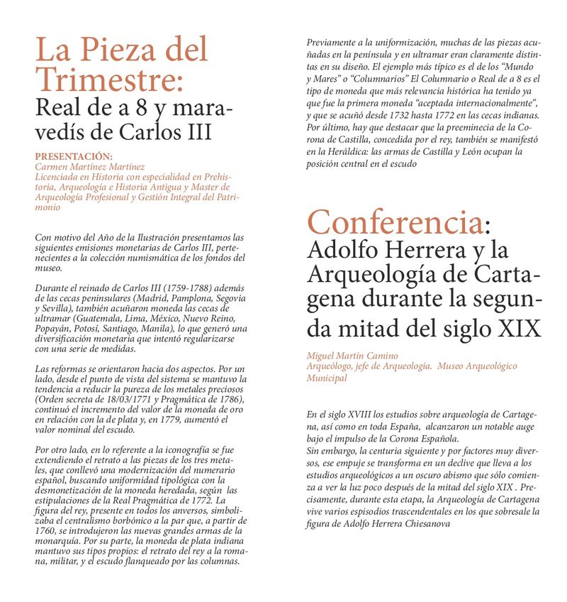 conferencia 'Adolfo Herrera y la arqueología de Cartagena durante la segunda mitad del siglo XIX', que correrá