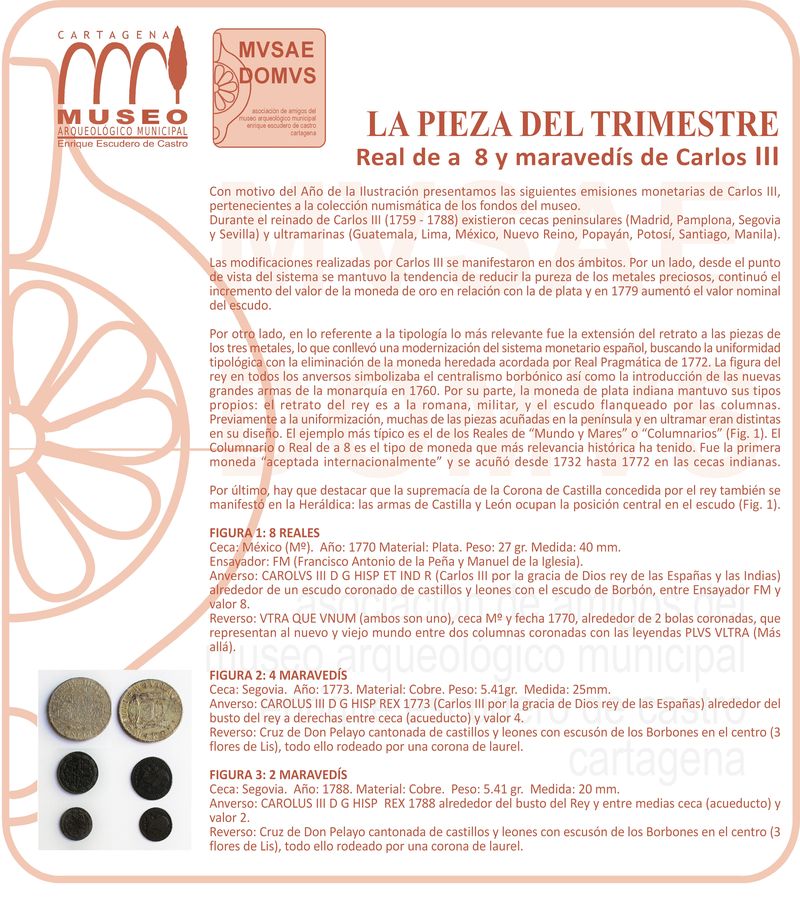 un 'Real de a 8' y varios maravedíes de Carlos III. La encargada de presentar estos ejemplares será