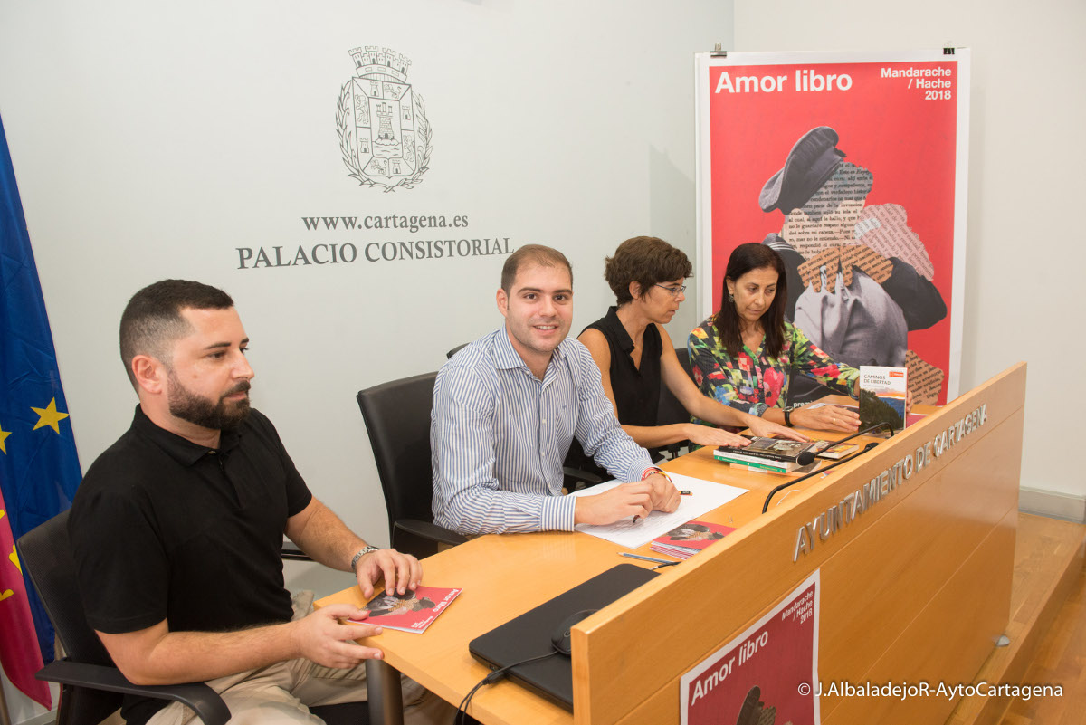 Con el lema “Amor libro” y un cartel del diseñador Salvador Roldán Jiménez, el Concejal del Área de Cultura, Patrimonio Arqueológico, Juventud y Deportes, Ricardo Segado, ha presentado hoy miércoles junto a las profesoras del IES ‘Jiménez de la Espada’, Purificación Mármol y María Luisa Castellón, miembros del Grupo Promotor del proyecto, los detalles la nueva edición de los Premios Mandarache y Hache, presentación a la que también se ha sumado el coordinador del proyecto, Alberto Soler.