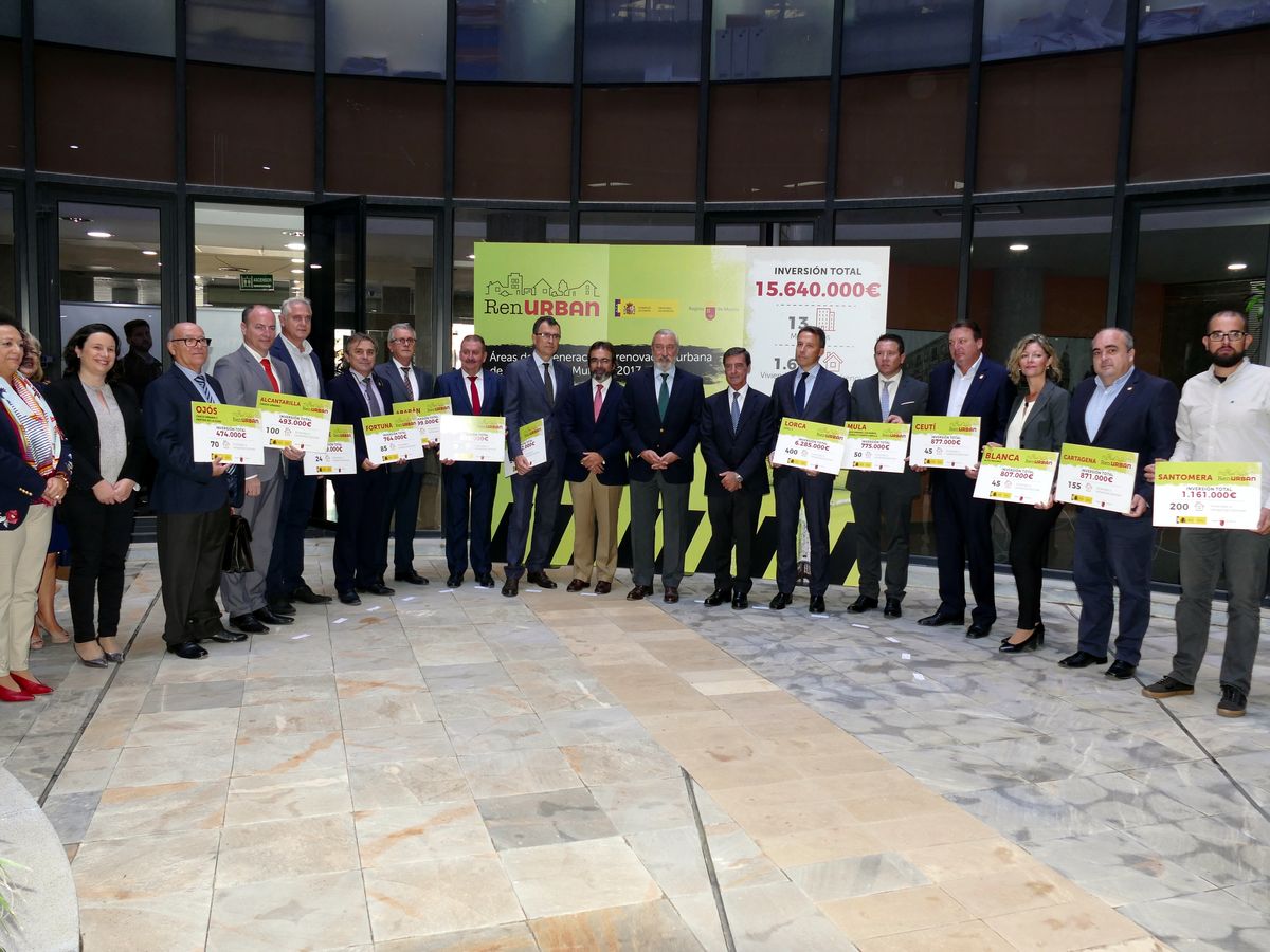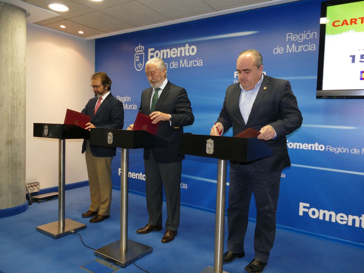 La firma del convenio se ha celebrado esta mañana en la Consejería de Presidencia y Fomento, y ha contado con la asistencia del Secretario de Estado de Infraestructuras, del consejero de Fomento, de la directora general de Ordenación del Territorio y de los alcaldes de los municipios beneficiarios.