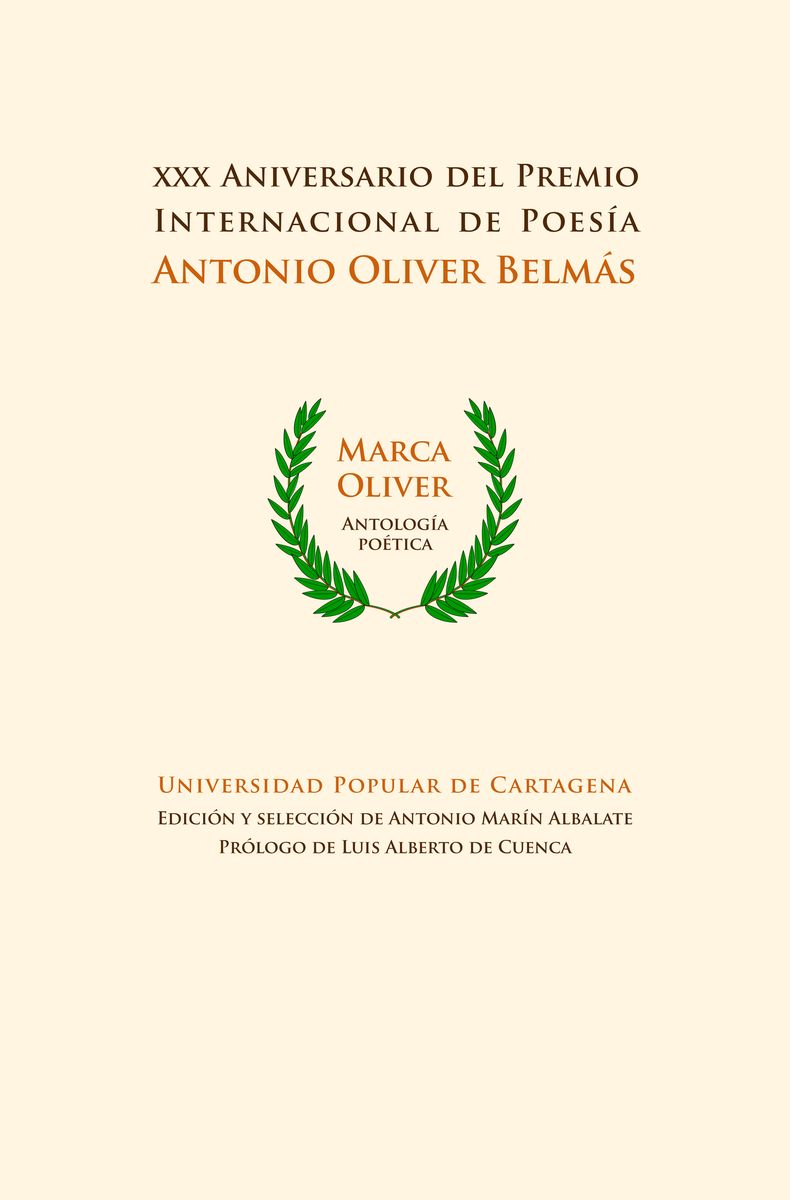 La Universidad Popular de Cartagena ha publicado 'Marca Oliver', una antología a cargo de Antonio Marín Albalate con una selección de los poetas ganadores en cada año de las tres décadas que ha cubierto ya el premio