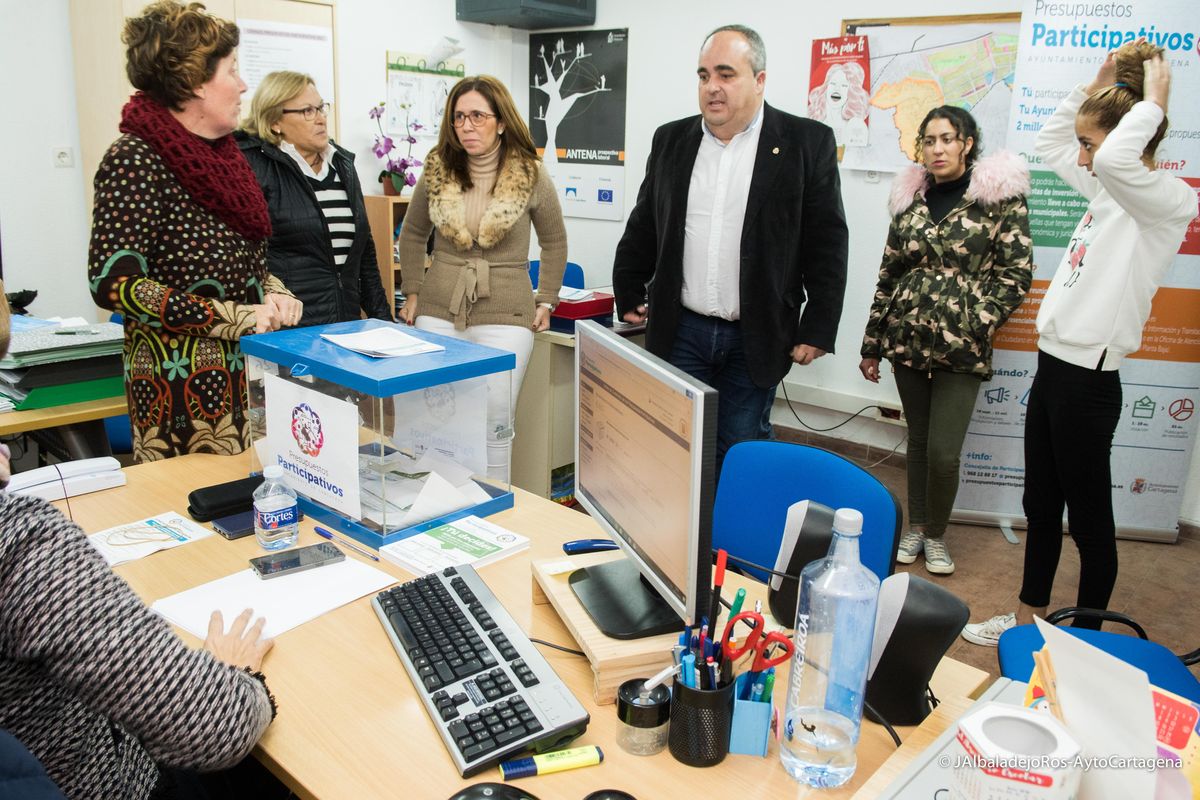 La alcaldesa y el concejal de Descentralización visitaron este martes el local social y los bajos de Centro de Salud así como la sede de la Asociación Rascasa, donde está ubicada la urna para votar en los Presupuestos Participativos 2018
