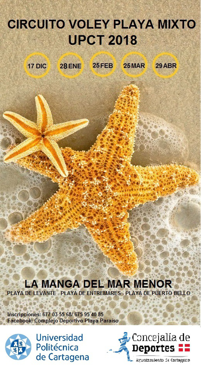 instalación de campos de voleibol con redes fijas en las playas, que permitan que esta modalidad deportiva se pueda practicar tanto en invierno como en verano, un proyecto en el que también toma parte la UPCT, que '