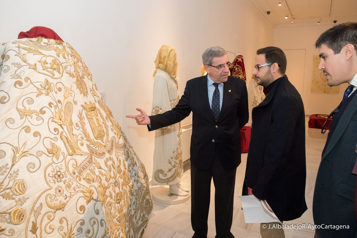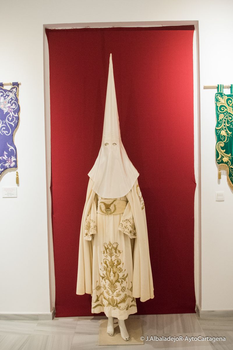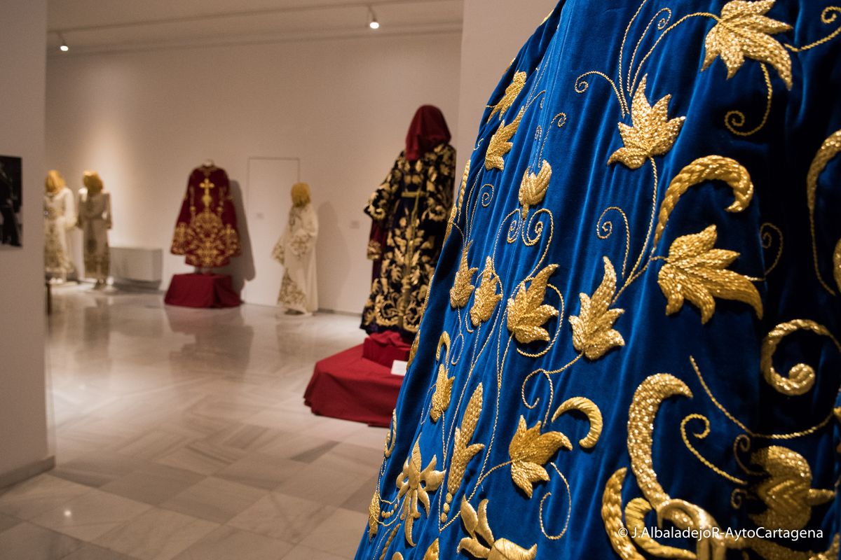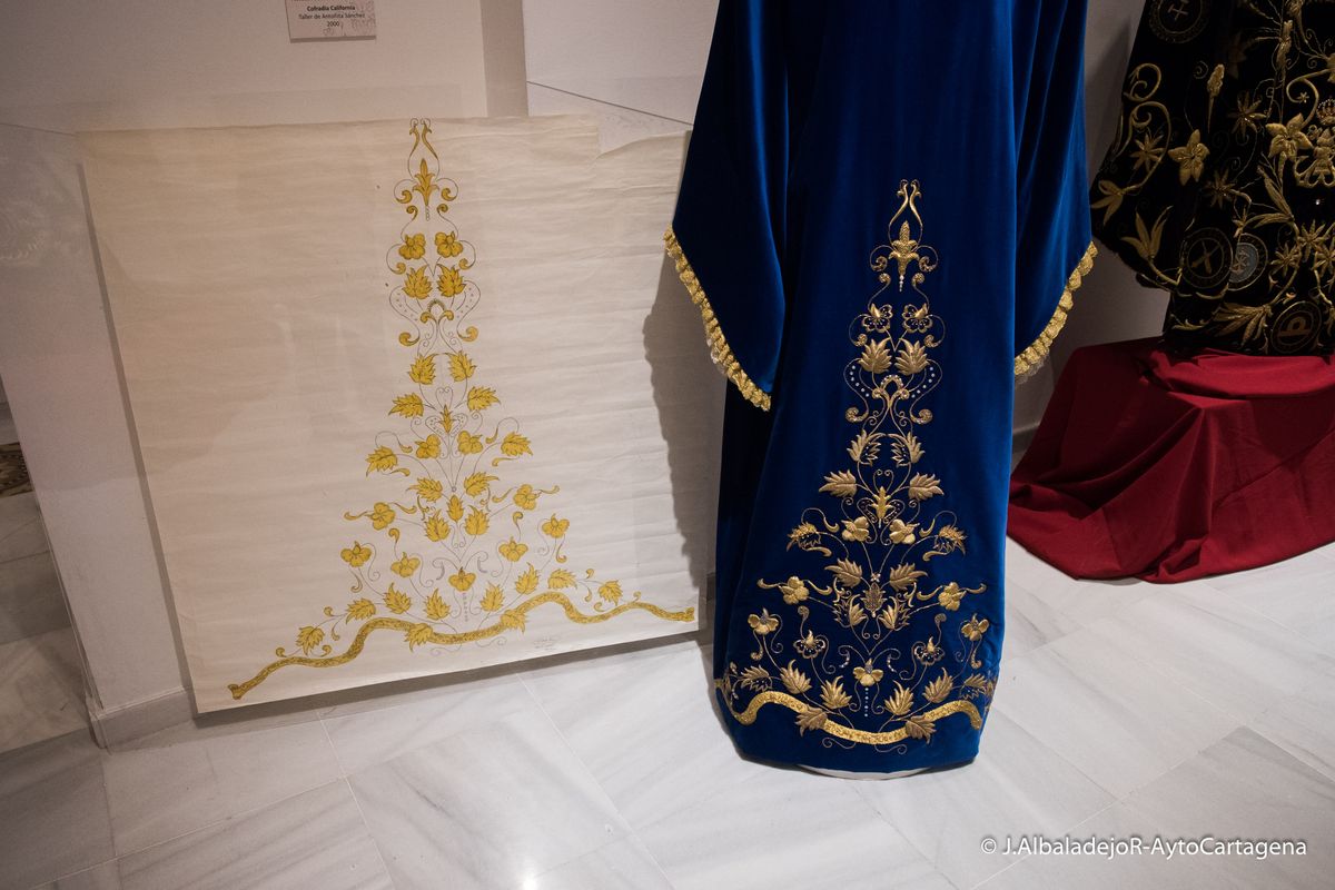 La muestra, que incluye indumentaria, estandartes, mantos y bocetos, entre otras obras del prolífico diseñador y cofrade, se podrá visitar en la primera planta del Palacio Molina hasta el próximo 21 de enero de 2018