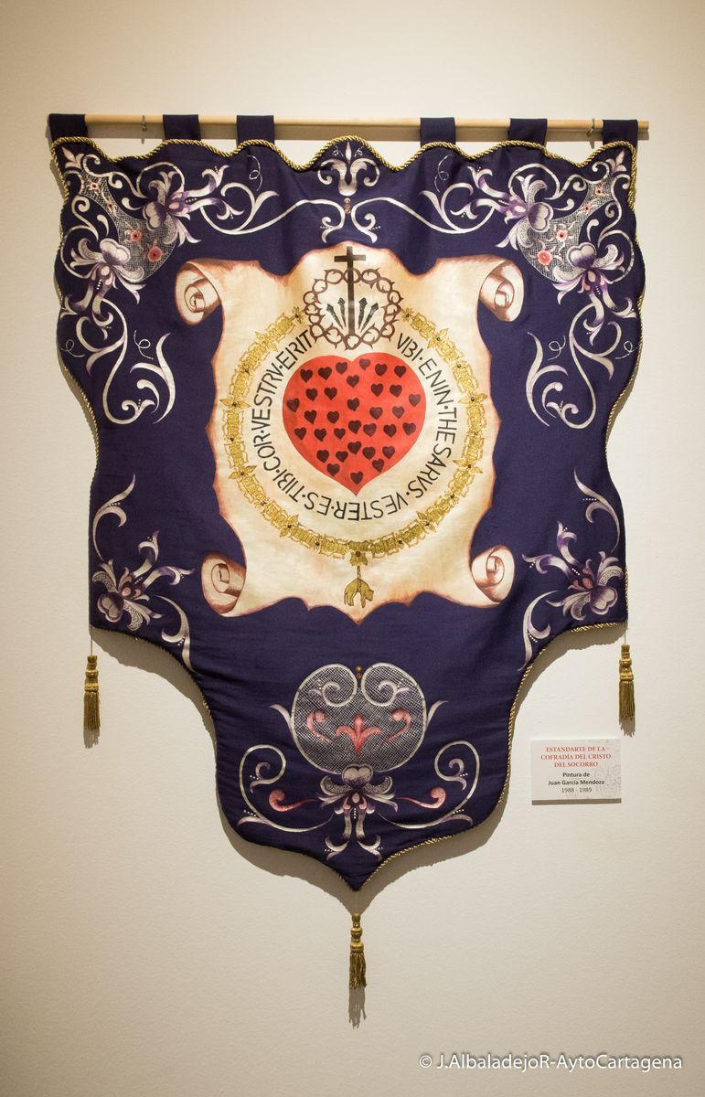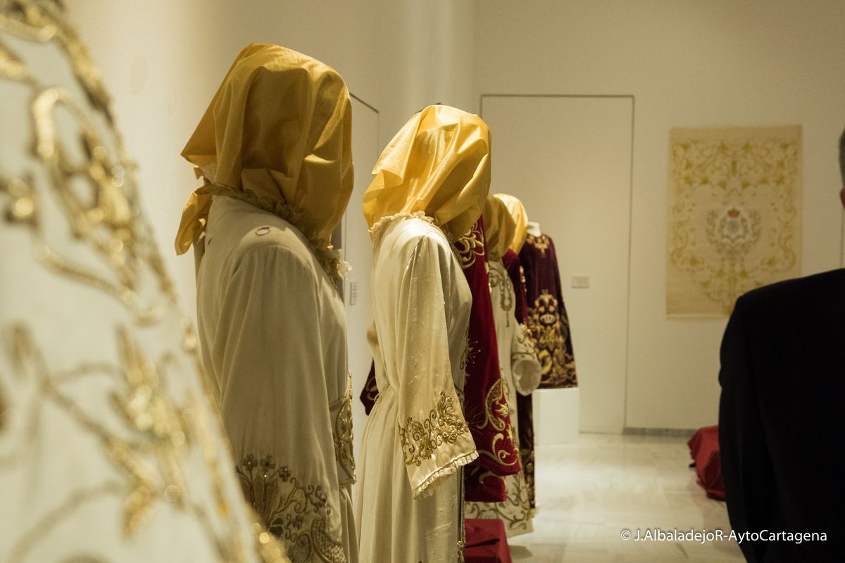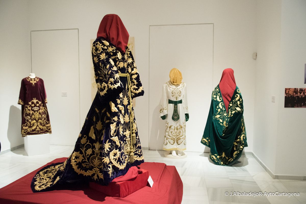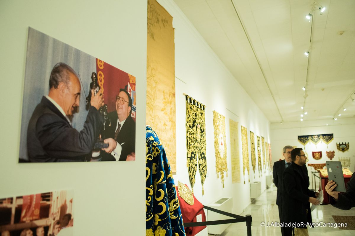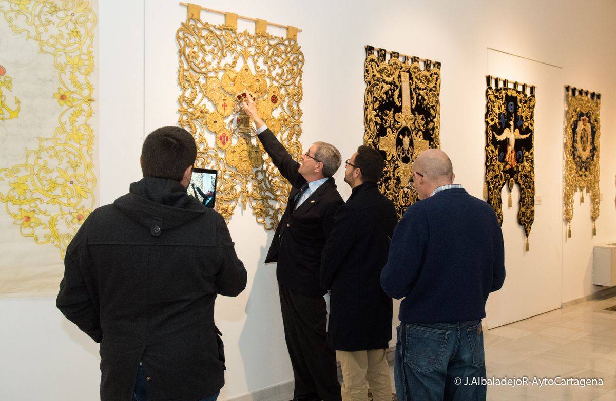 La muestra, que incluye indumentaria, estandartes, mantos y bocetos, entre otras obras del prolífico diseñador y cofrade, se podrá visitar en la primera planta del Palacio Molina hasta el próximo 21 de enero de 2018