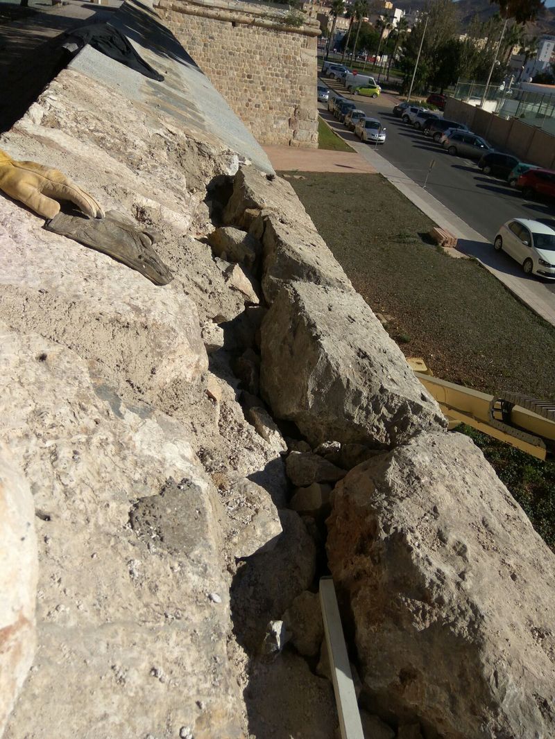 la caída de esta rama había provocado el arranque y desmontaje de la línea superior de la mampostería de caliza de unos 4 metros. Debido al
