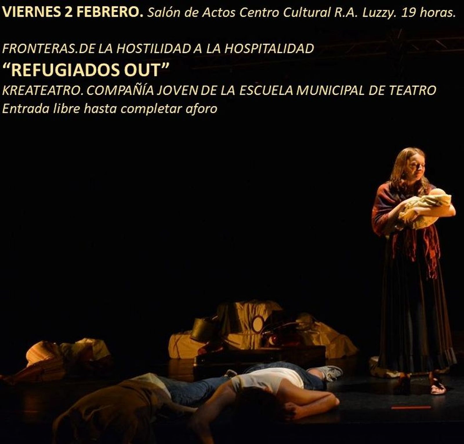 La obra de teatro 'Refugiados out' se representará el viernes, 2 de febrero a las 19:00 horas dentro de la programación 'Leer, pensar,imaginar' que organiza la Concejalía de Cultura