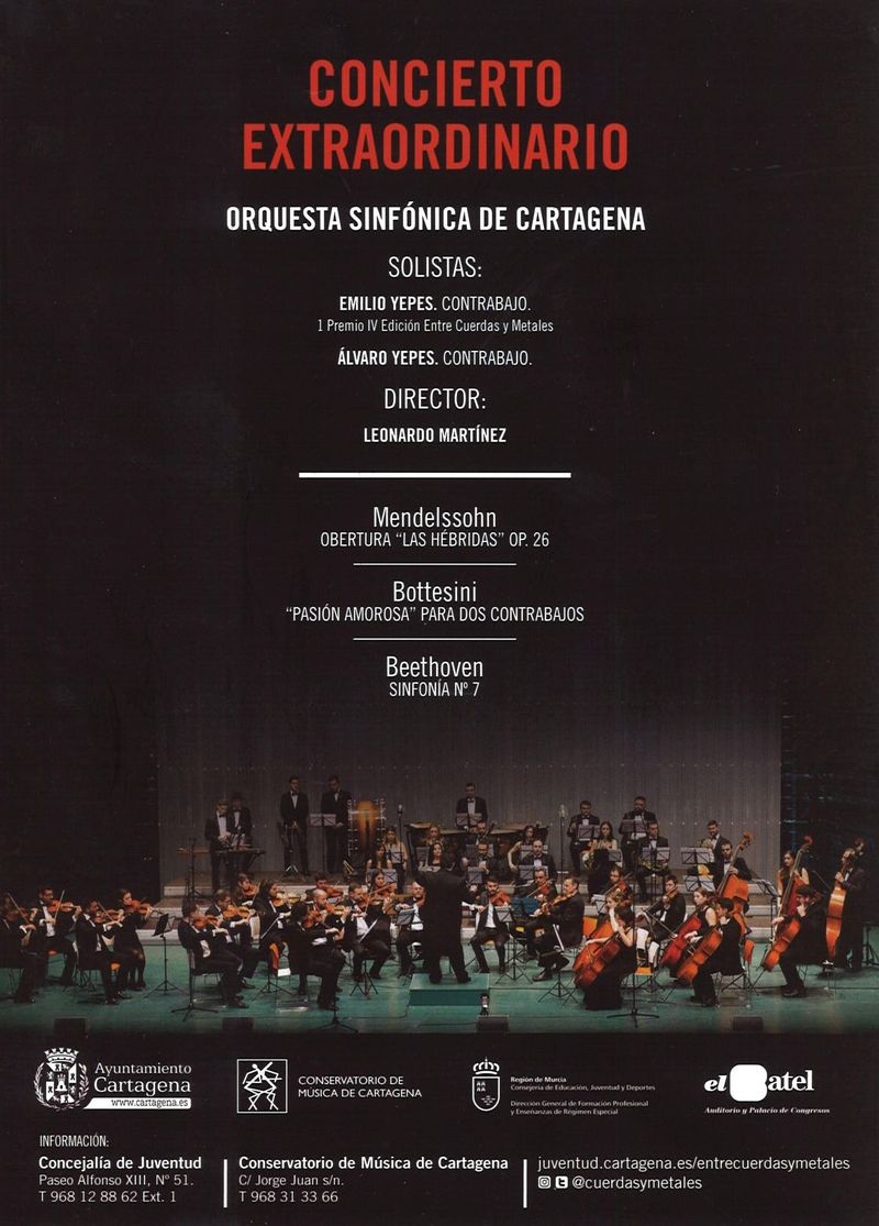 la actuación como solistas de los hermanos cartageneros Emilio y Álvaro Yepes, dos jóvenes contrabajistas formados en el Conservatorio de Cartagena y que disponen hoy de una importante trayectoria musical en Europa.