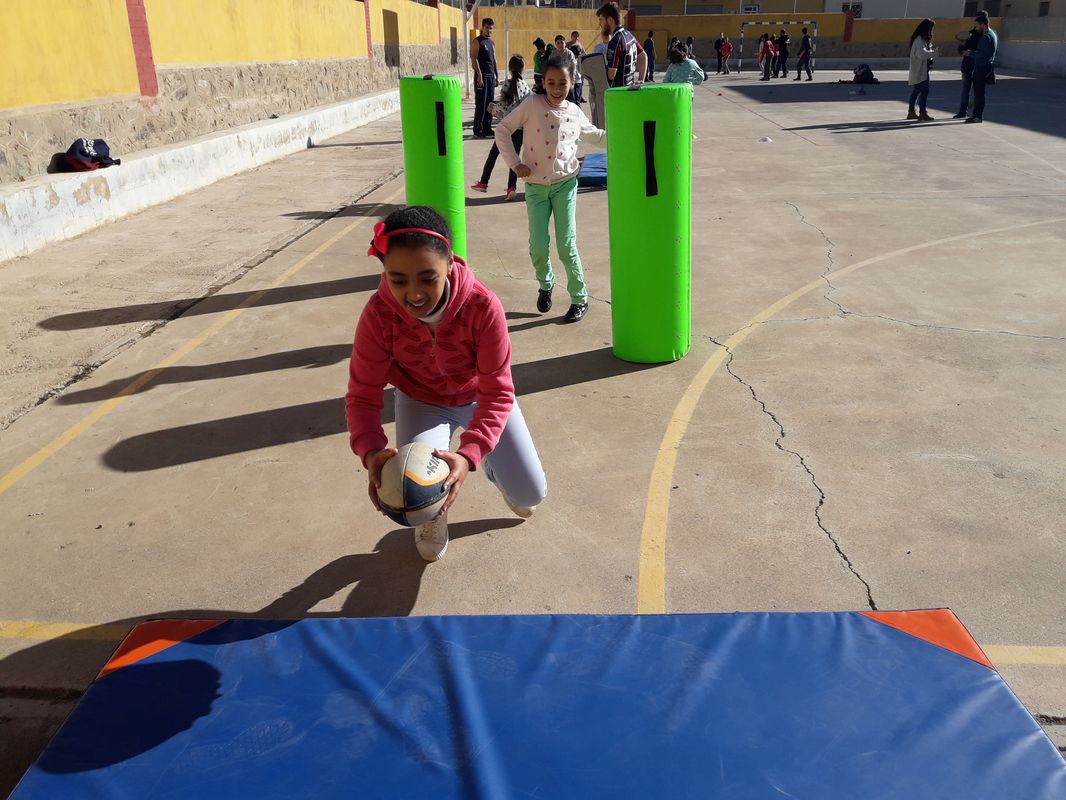 Los alumnos se han fotografiado con los deportistas y han practicado distintos ejercicios para acercarse al rugby