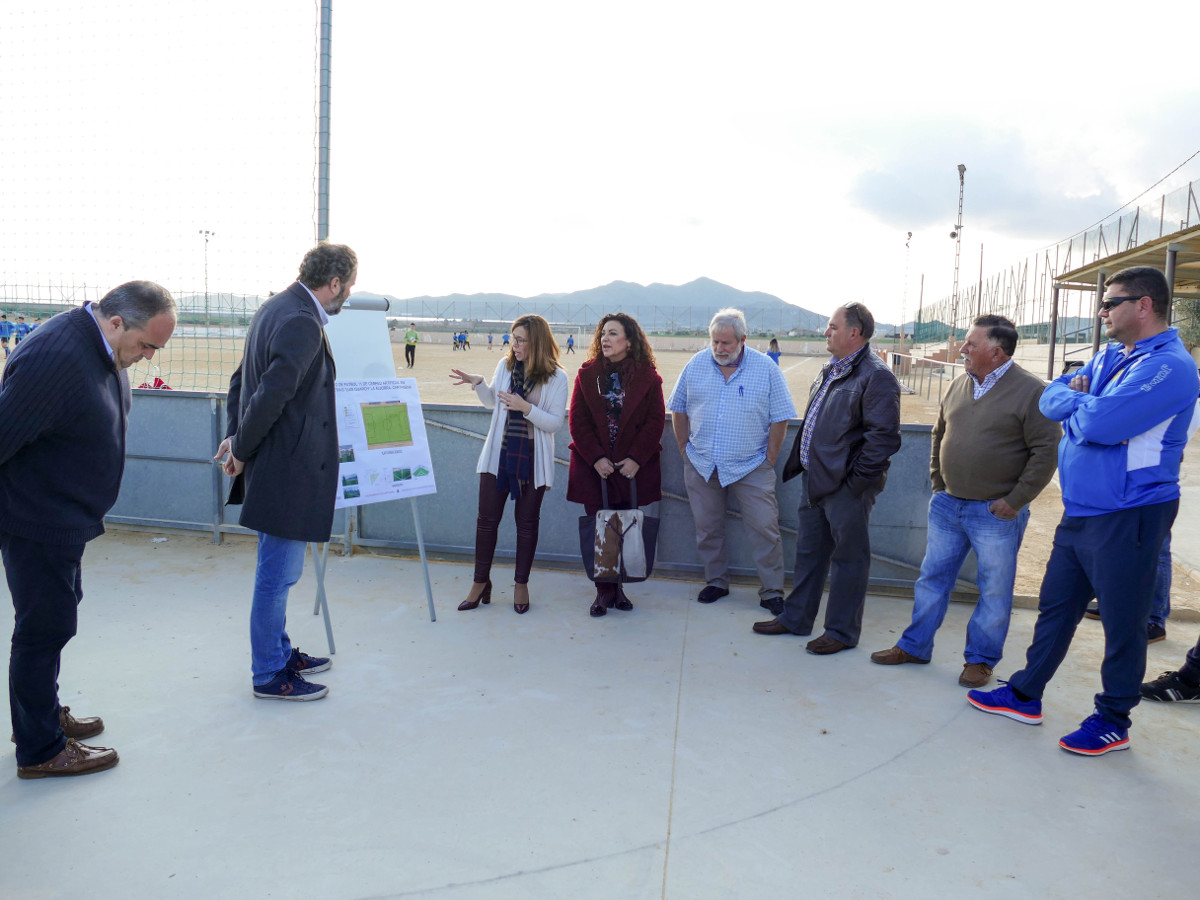 La alcaldesa, acompañada por los ediles de Infraestructuras y Deportes, visitó ayer lunes ambas instalaciones deportivas e informó a vecinos y clubes del inicio hoy martes de las obras