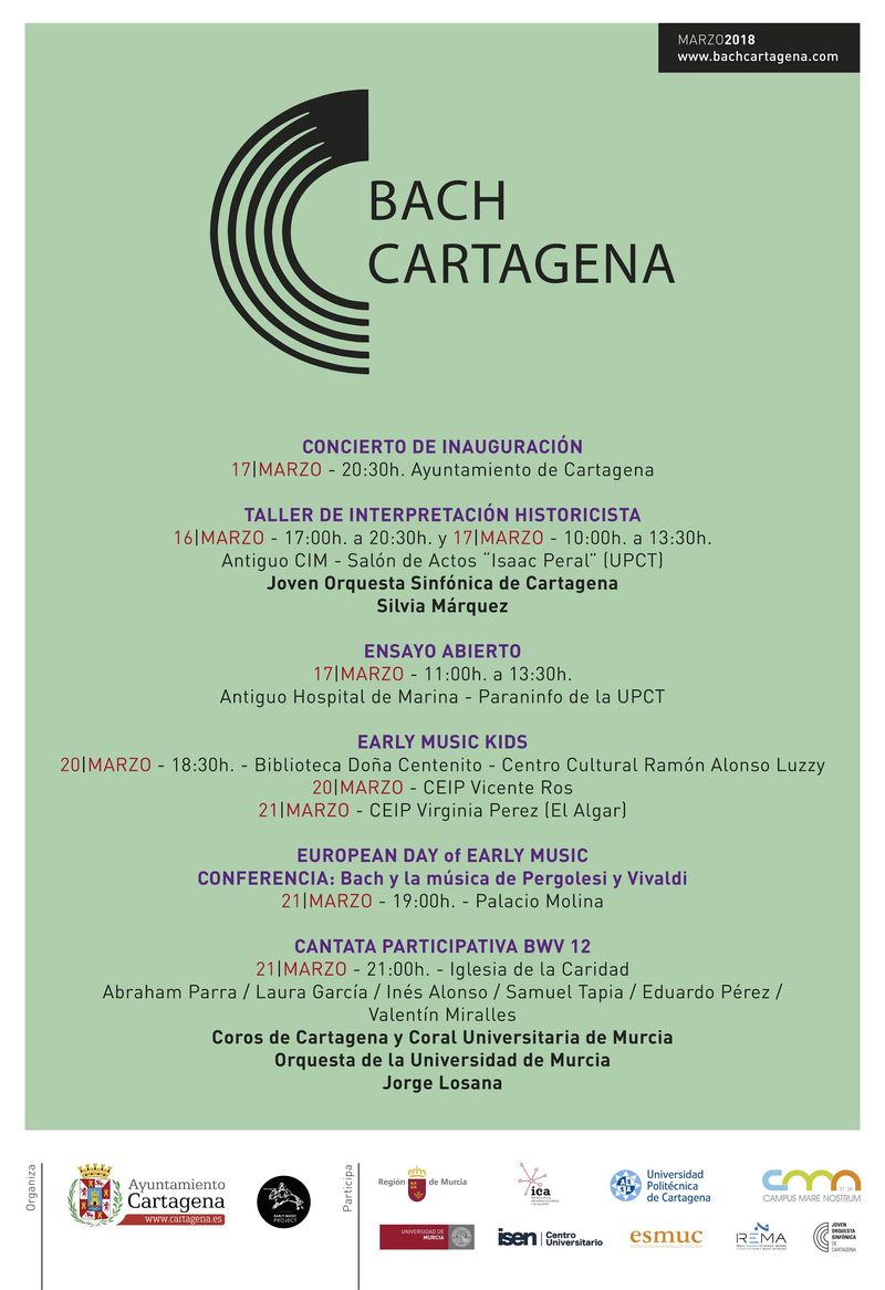 Bach Cartagena se estrenará con un taller de interpretación histórica el 16 de 17:00 a 20:30 horas, y 17 de marzo de 10:00 a 13:30 horas en el salón de actos ‘Isaac Peral’ de la UPCT, en el que intervendrá la