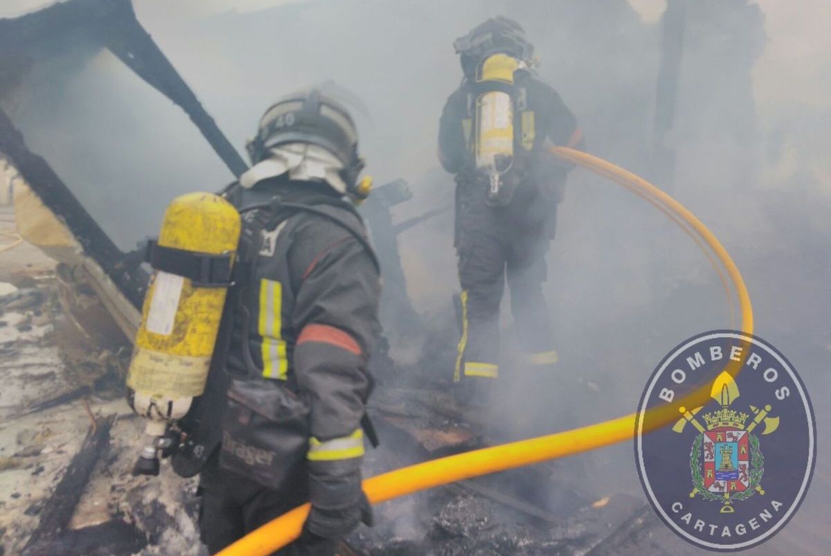 Los Bomberos de Cartagena sofocaron el fuego provocado por una embarcación que se encontraba dentro de unas instalaciones industriales