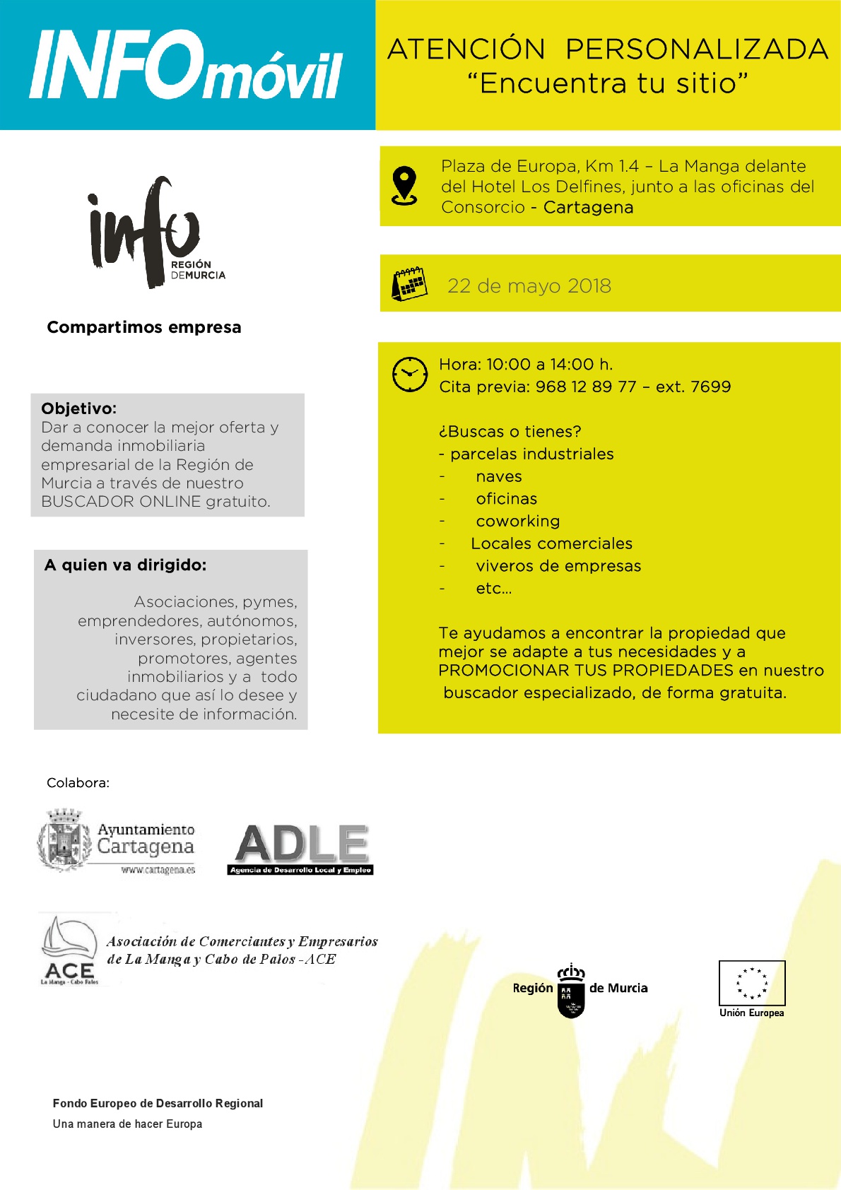 El vehículo da a conocer el servicio 'Encuentra tu Sitio' un buscador online gratuito que permite acceder a la mejor oferta y demanda inmobiliaria empresarial de la Región de Murcia