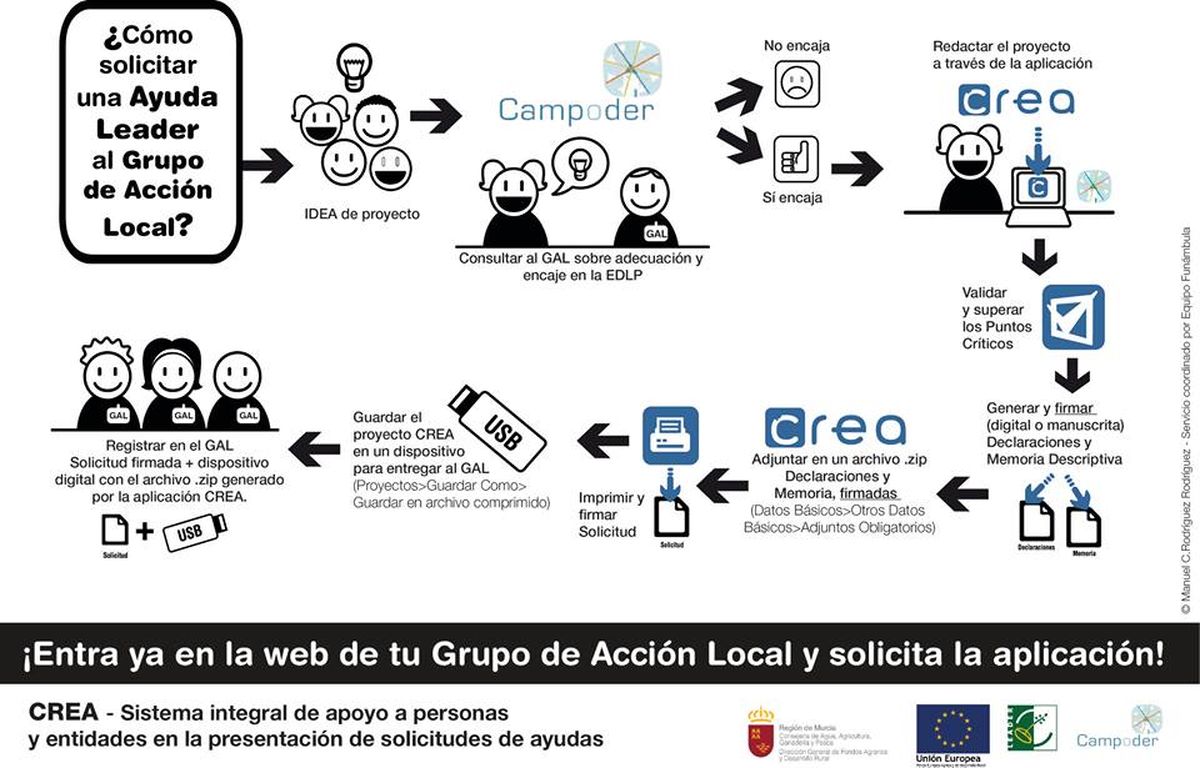 www.campoder.es). En dicha página también tienen a su disposición la convocatoria de ayudas, una guía del promotor y una aplicación informática denominada CREA-Campoder que les ayudará y orientará en la cumplimentación y tramitación de su solicitud.