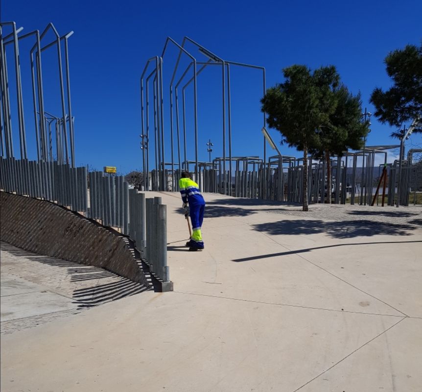 barredoras, sopladoras, desbrozadoras, cubas de baldeo e hidrolimpiadoras, en las avenidas Génova y Venecia, calle Turín, Padua, paseo Palermo, parking del Centro Deportivo y la rotonda de salida de la urbanización.