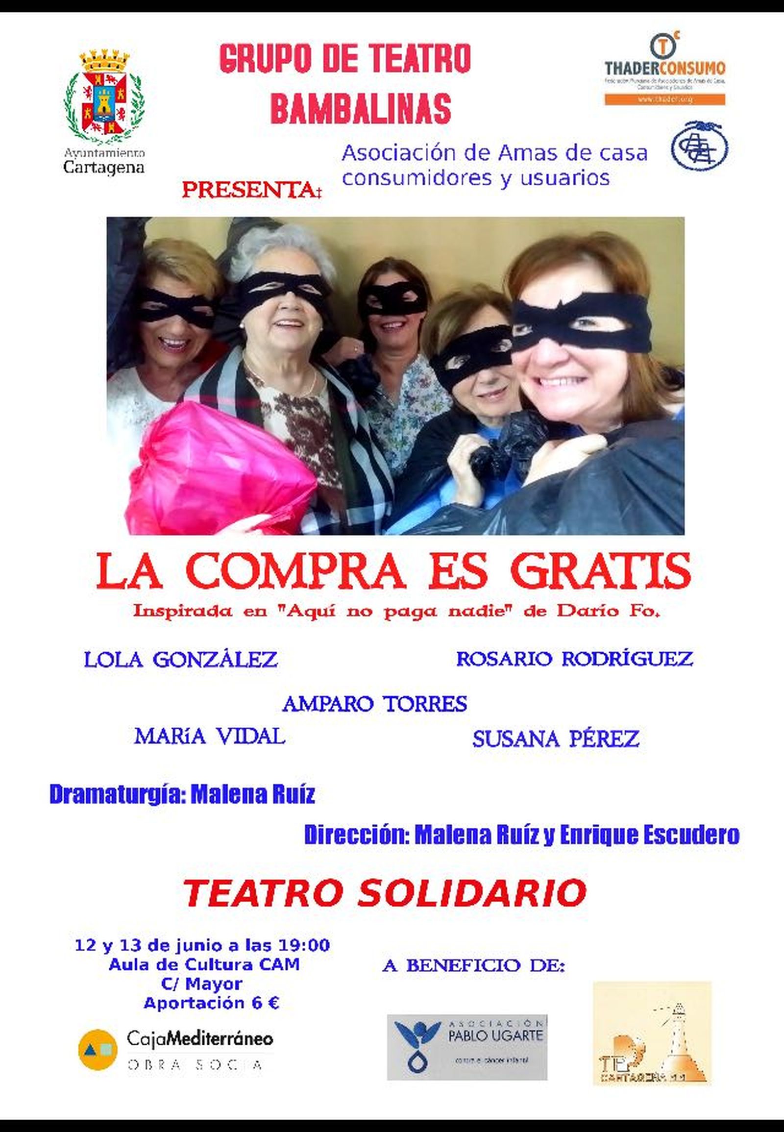 La obra teatral se representó este miércoles en el Aula de Cultura CAM. Los beneficios irán destinados a la Asociación Pablo Ugarte contra el cáncer infantil y para la Asociación de Ayuda e Investigación de los Trastornos de Personalidad de Cartagena, Comarca y Mar Menor