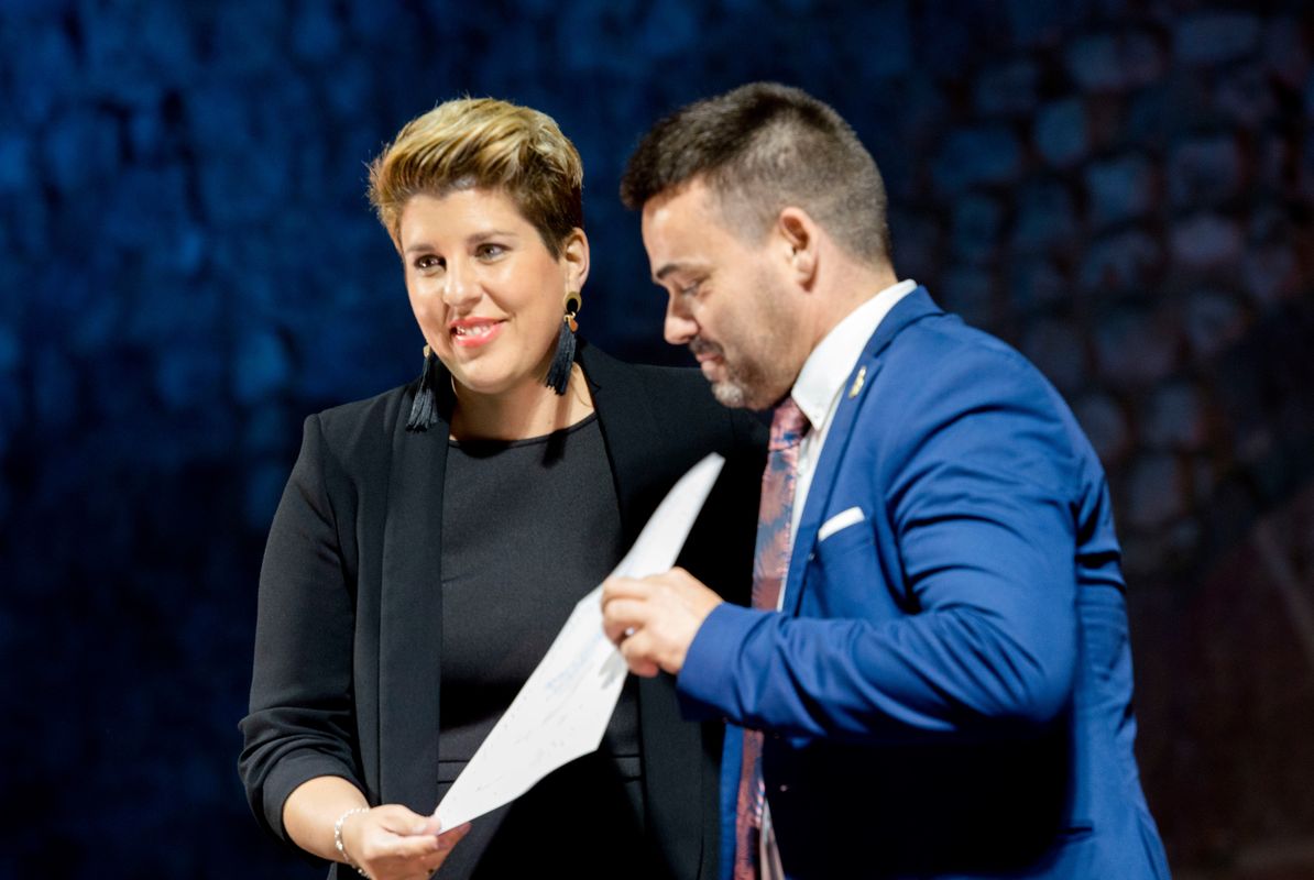 Noelia Arroyo, consejera de Transparencia de la CARM ha hecho entrega del premio Cartagena Jonda y Fernando Sáenz de Elorrieta, en representación del colectivo Ars Nostrum el premio “Ginés Jorquera” del Concurso de Letras de cartageneras otorgado a