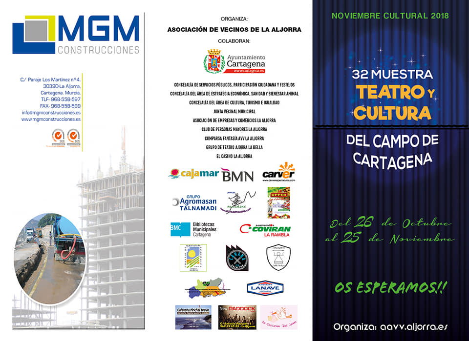 La diputación vuelve a celebrar la 'Muestra. Teatro y cultura del Campo de Cartagena', enmarcada dentro de la programación 'Noviembre cultural' que se celebra del 26 de octubre al 25 de noviembre