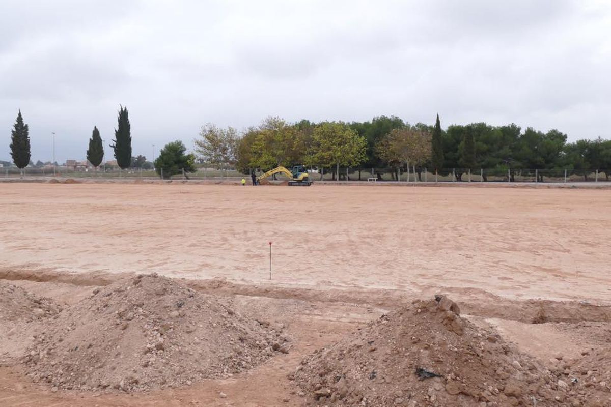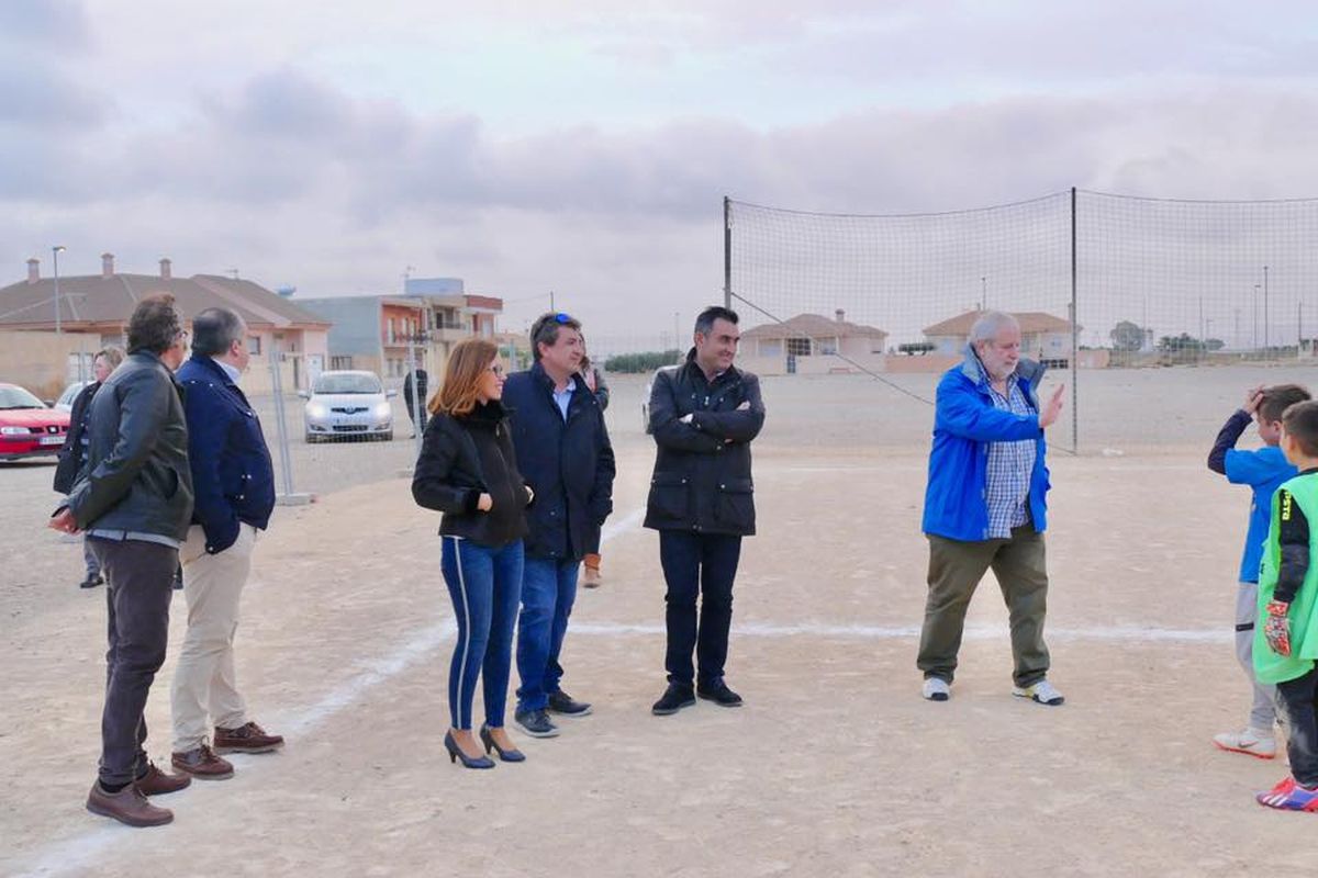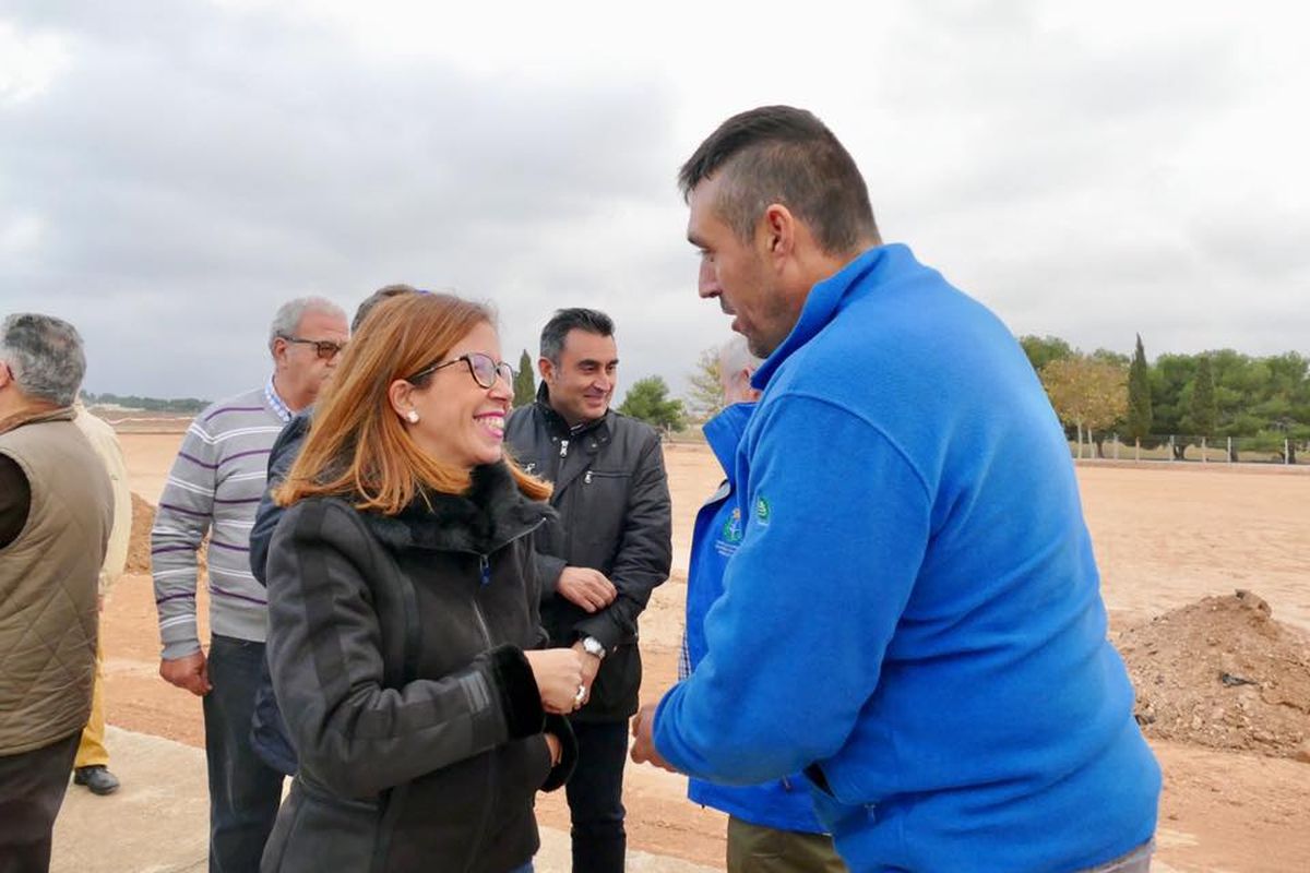 La alcaldesa, Ana Belén Castejón, acompañada por los ediles de Servicios Públicos y Deportes, recorrió en la tarde de este miércoles las intalaciones deportivas para comprobar los trabajos que se están llevando a cabo en la colocación de césped artificial
