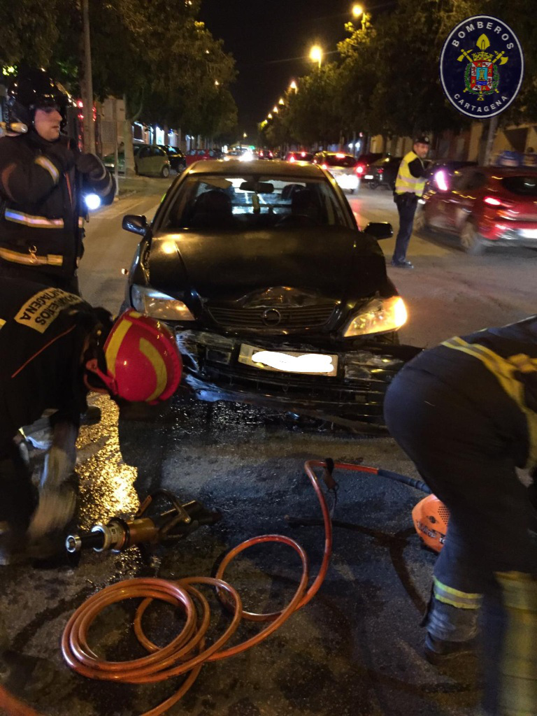 Efectivos del cuerpo de Bomberos intervinieron en la noche de ayer jueves en el accidente en el que estaban implicados dos vehículos