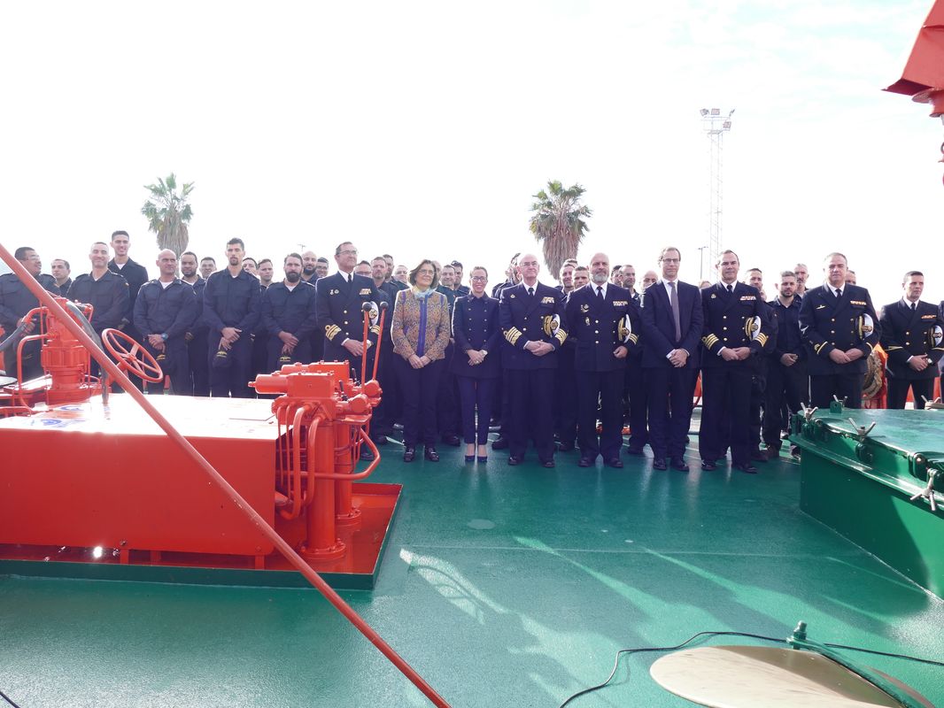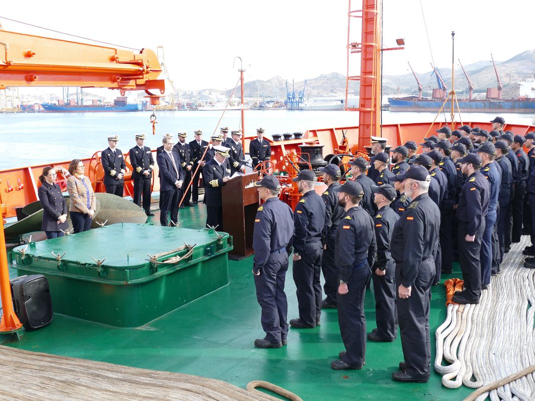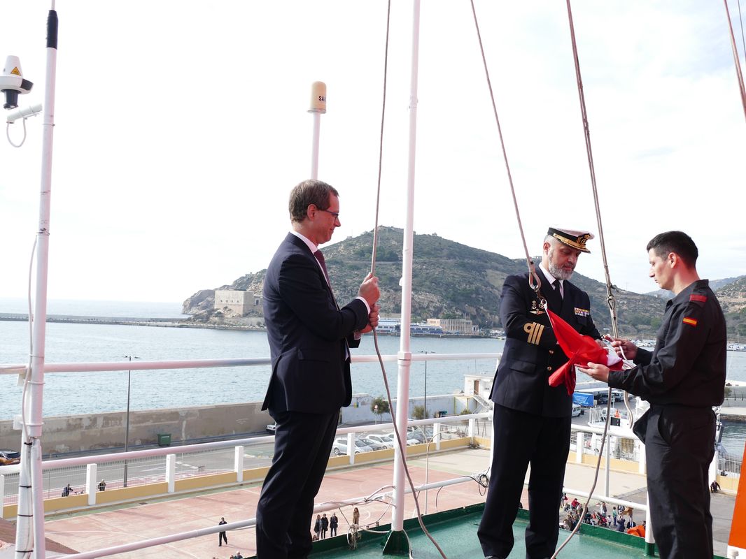 La alcaldesa de Cartagena, Ana Belén Castejón, ha acudido este miércoles, 19 de diciembre, a despedir a la tripulación, que no volverá hasta el 26 de junio