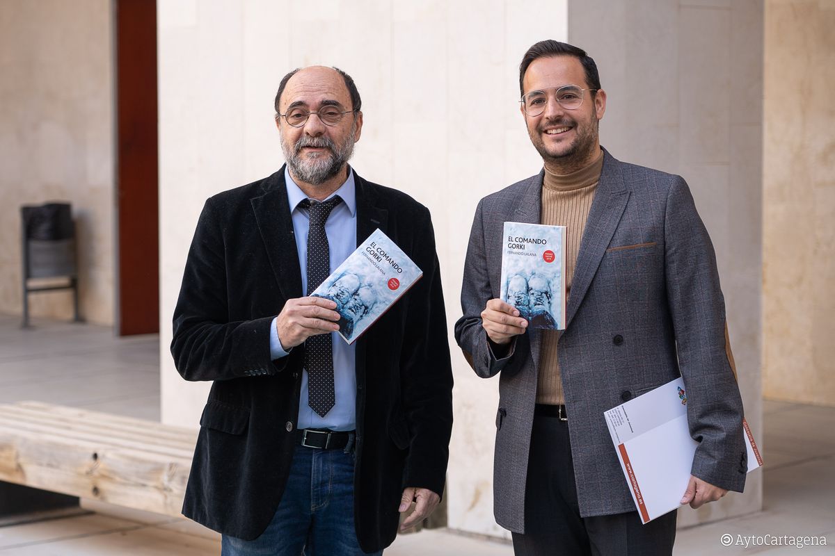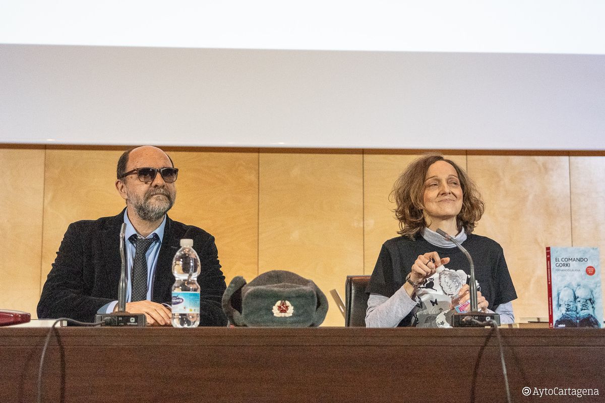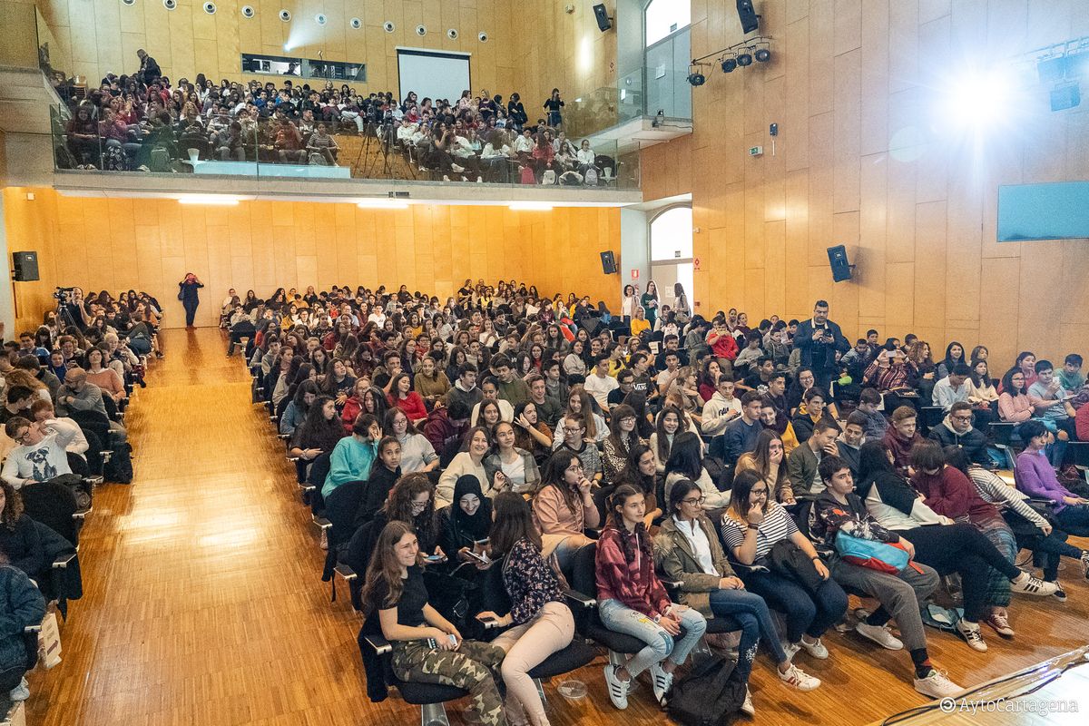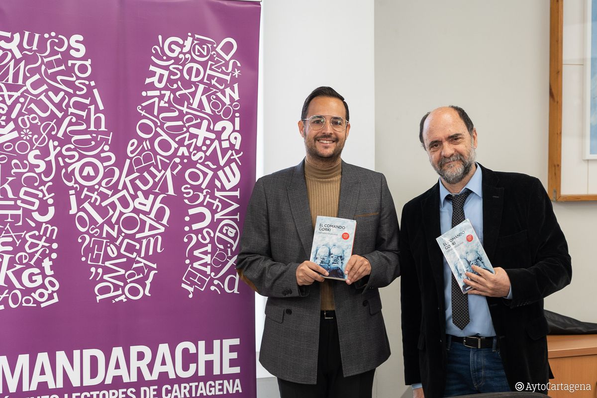 El primero de los encuentros ha tenido lugar en el Paraninfo de la UPCT ante más de 600 estudiantes de secundaria para presentar su novela 'El comando Gorki'