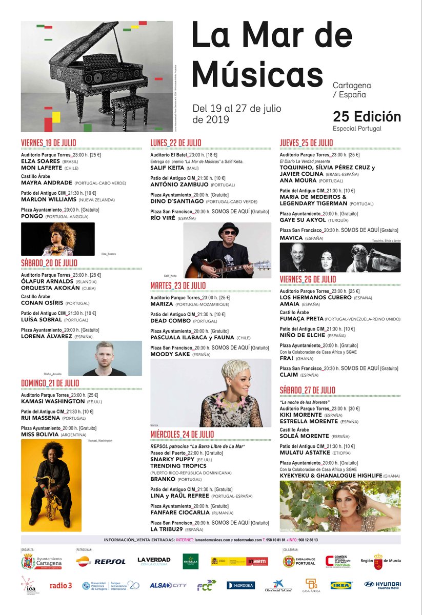 19 al 27 de julio, entre ellos Kamasi Washington, Ólafur Arnalds, Salif Keita, Amaia, Snarky Puppy y Toquinho junto a Silvia Pérez Cruz.
