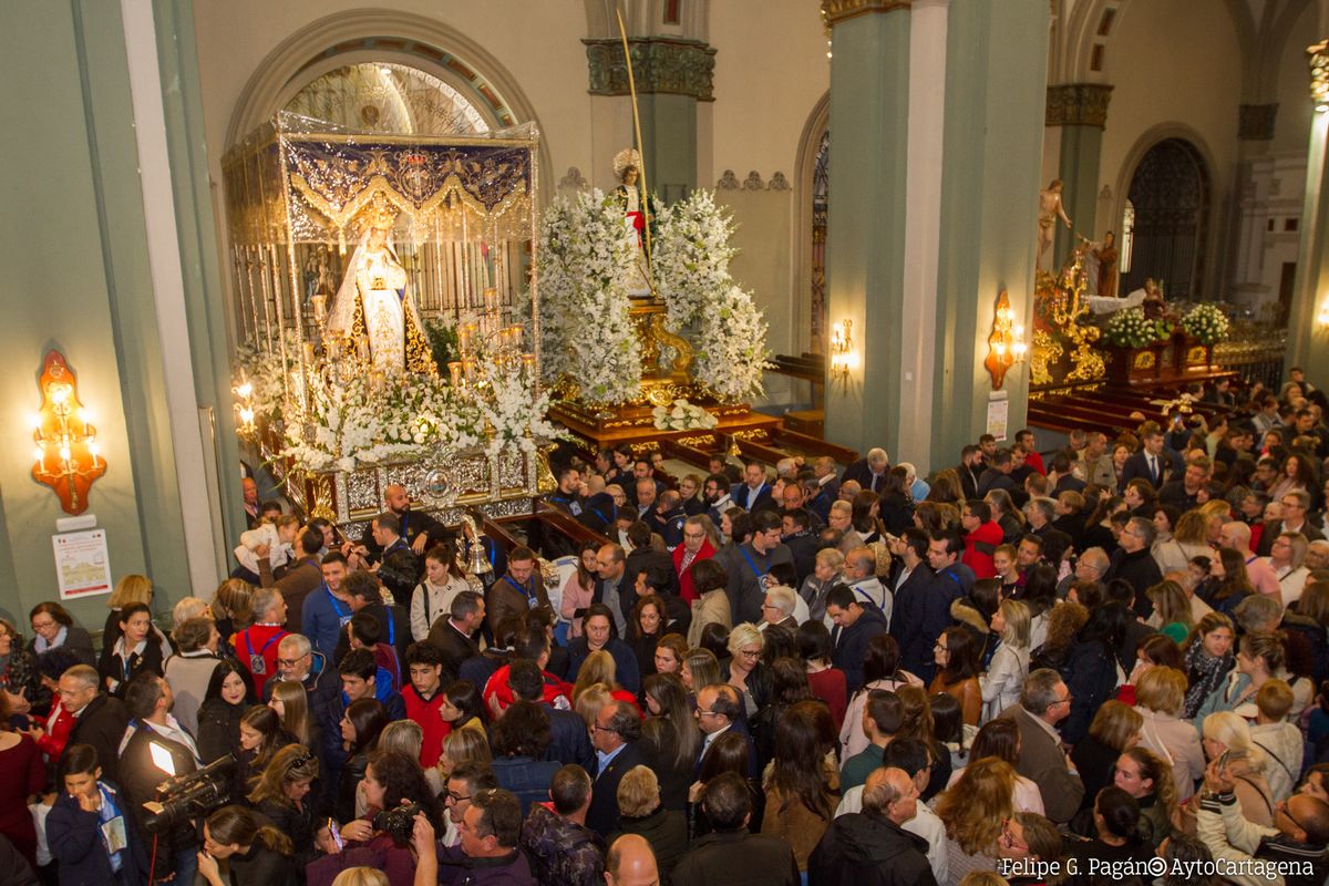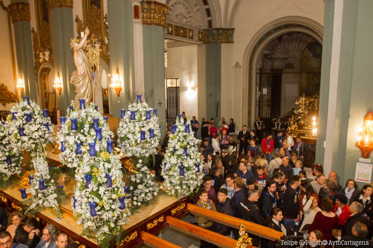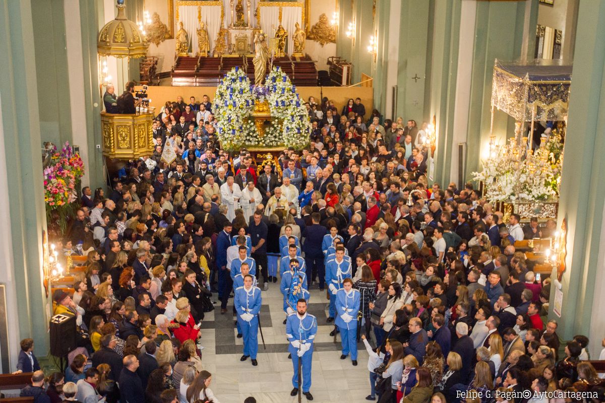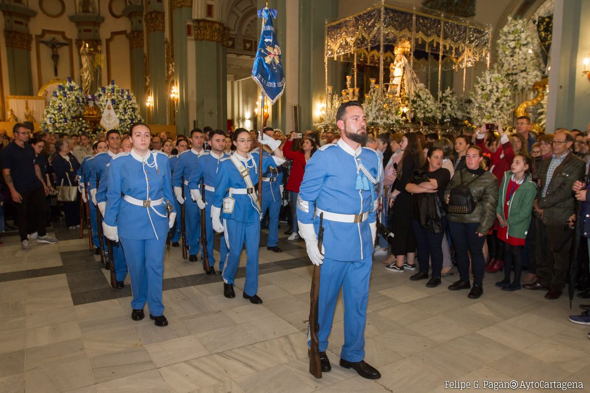En su lugar, los cofrades blancos invitaron al pueblo de Cartagena a visitar los tronos con flor en el interior de la iglesia y a cantar la última salve a la Virgen del Amor Hermoso