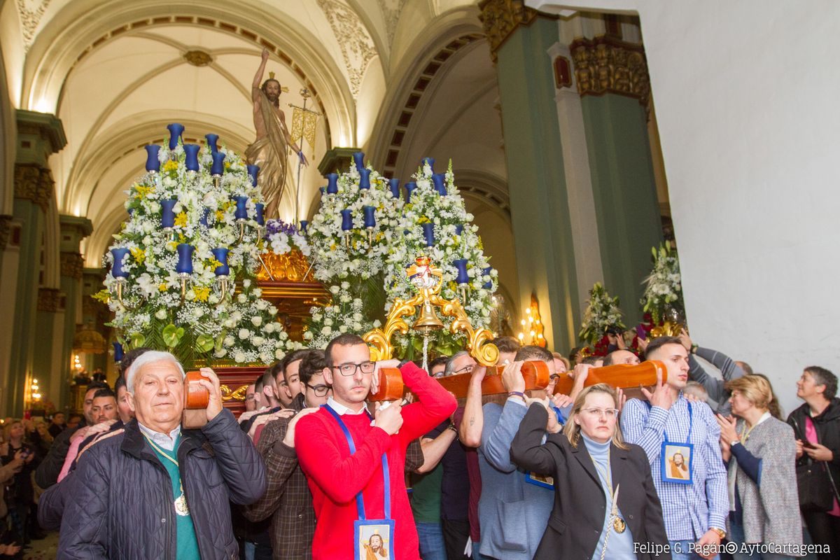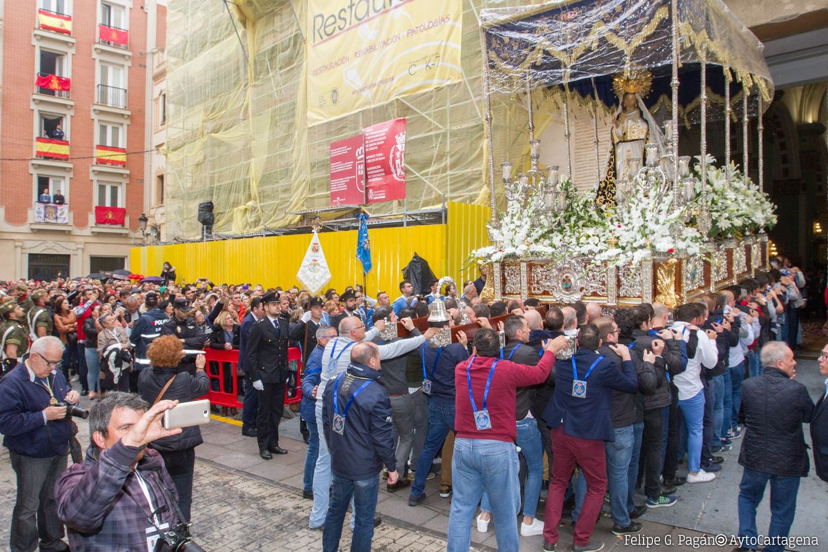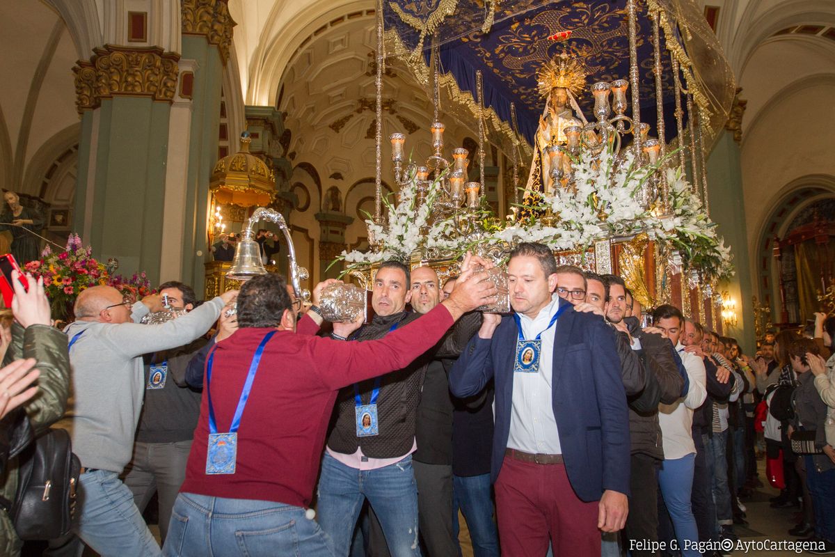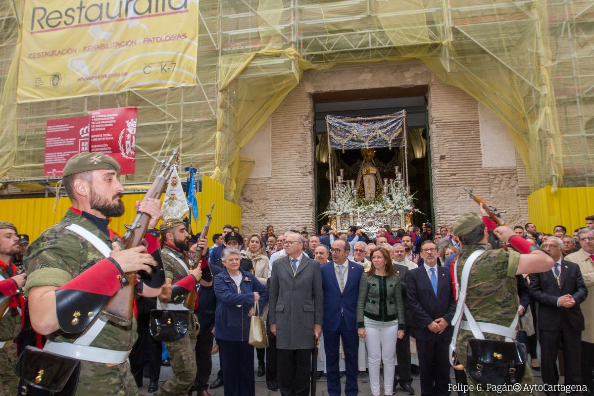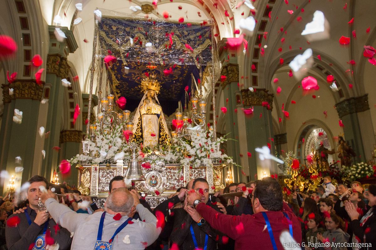 En su lugar, los cofrades blancos invitaron al pueblo de Cartagena a visitar los tronos con flor en el interior de la iglesia y a cantar la última salve a la Virgen del Amor Hermoso