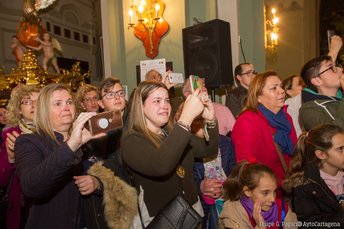 Como ya ocurrió con los marrajos, numerosos procesionistas, cofrades y público en general acudió al templo, entre ellos el delegado del Gobierno en la Región de Murcia,